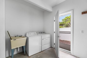 The tranquil grounds are a true oasis, featuring a serene garden and sitting area, a potting shed, a versatile workshop/craft room, and separate storage. The fully fenced and private backyard showcases a verdant landscape with a diverse array of tropical flora, including birds of paradise, hibiscus, portacarpus, monstera, tamarillo, banana, coffee, bamboo, eureka palms, plumbago, and brugmansia. Two laundry areas are conveniently located on the property, one in the main home and one in the rear. This property offers a unique opportunity and must be seen to be fully appreciated.
