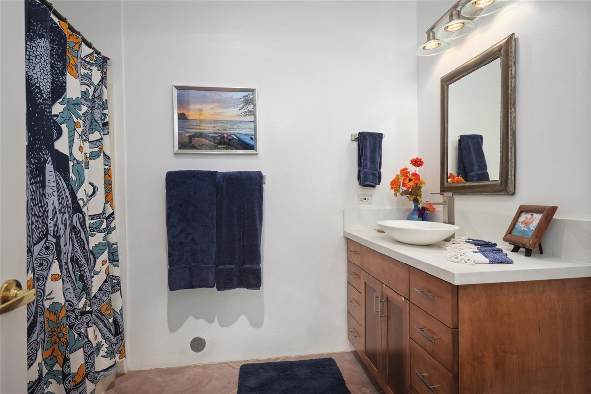 Discover the epitome of comfortable living in this stunning home nestled in serene Mokuloa in Waimea. This property boasts a unique limestone and koa wood bar, setting the stage for an elegant living experience. The house features a light, spacious, and airy design with high ceilings, enhancing the feeling of openness.