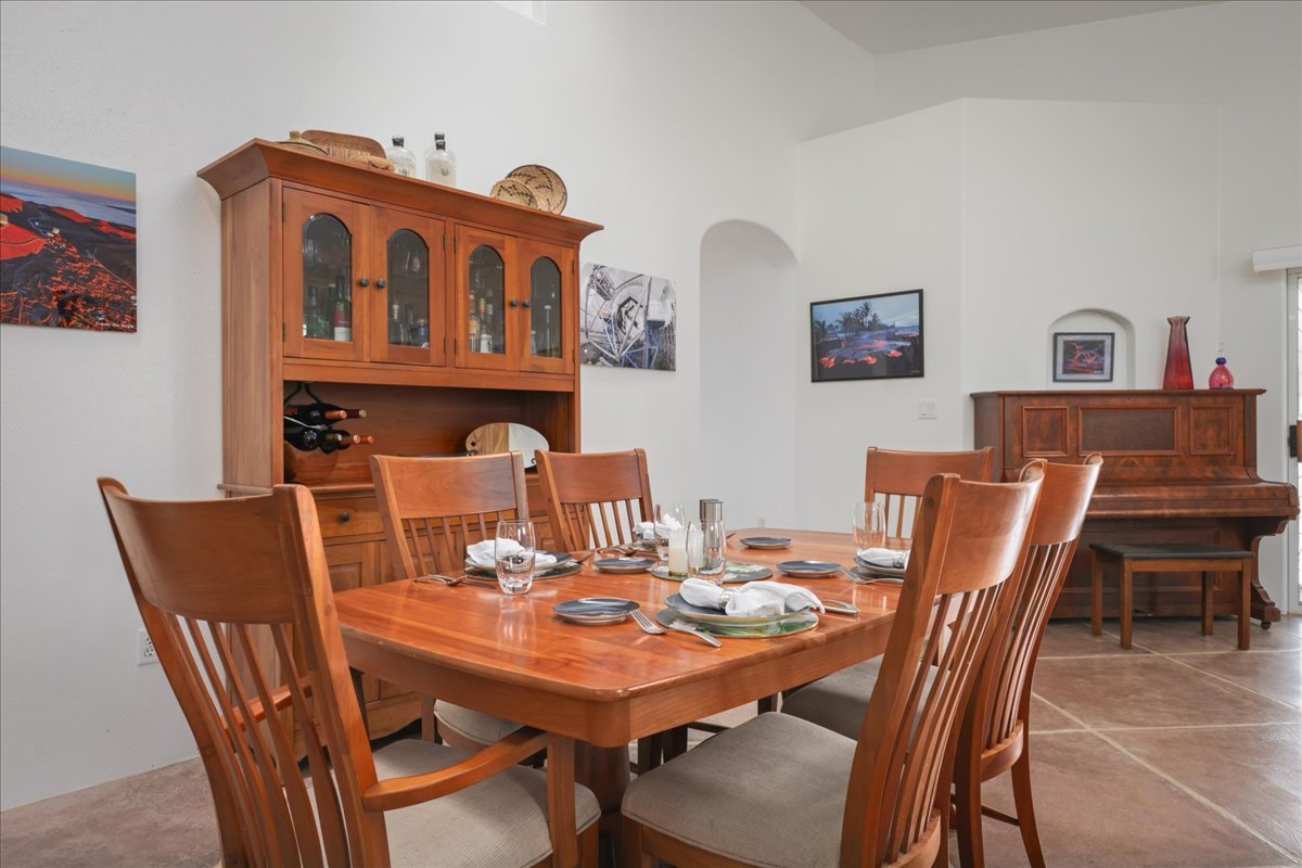 The kitchen is equipped with quartz countertops and a large island perfect for gourmet cooking. It offers ample storage with a large pantry, and seamlessly integrates with the dining and living areas, ideal for entertaining. All appliances are smart, including an LG electric range/oven, dishwasher, fridge, washer, and dryer.