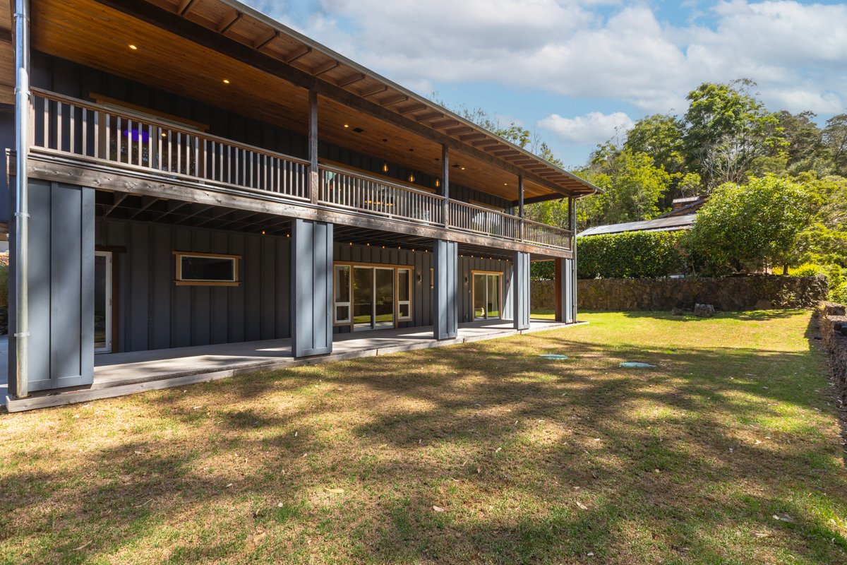 Huge price reduction! Hidden at the end of a private road in one of the most desirable neighborhoods in Waimea, this keenly customized residence is walking distance to Parker School, Waimea Park, restaurants and the farmer's market. The high quality materials and functional layout of this 4 bedroom, 3 bath home is unique for the Waimea market. Built in 2019, it remains in excellent condition and comparable to many of the latest architectural designs being built today. Lots of indoor/outdoor living areas, including over 1,500 sf of covered lanai on both sides of the house on both levels, it also has an additional 800+ sf of flex space that can be used for expansion of the living area downstairs or lots of storage. Some of the design features include engineered silver oak flooring which can be refinished, quartzite counters, solid sapele doors and trim, toon mahogany slabs, high end aluminum doors and windows, brizo plumbing fixtures and western red cedar used for the exterior trim and decks. Enjoy the comfort of split ac units, providing ac, heat and dehumidifying, plus a high quality wood burning stove in the living room. The entry level has 3 bedrooms, 2 bathrooms, kitchen, laundry and two spacious lanai areas, in front of the house and in the back, accessed by high quality sliders and all on one level. The lower level has a living room, bedroom and bathroom, or can be used alternatively for offices, etc.; it also has access to a large covered lanai, accessed by sliding doors and screens. Add custom cabinets, top of the line appliances, on demand tankless hot water and photovoltaic power; this home has the whole package!