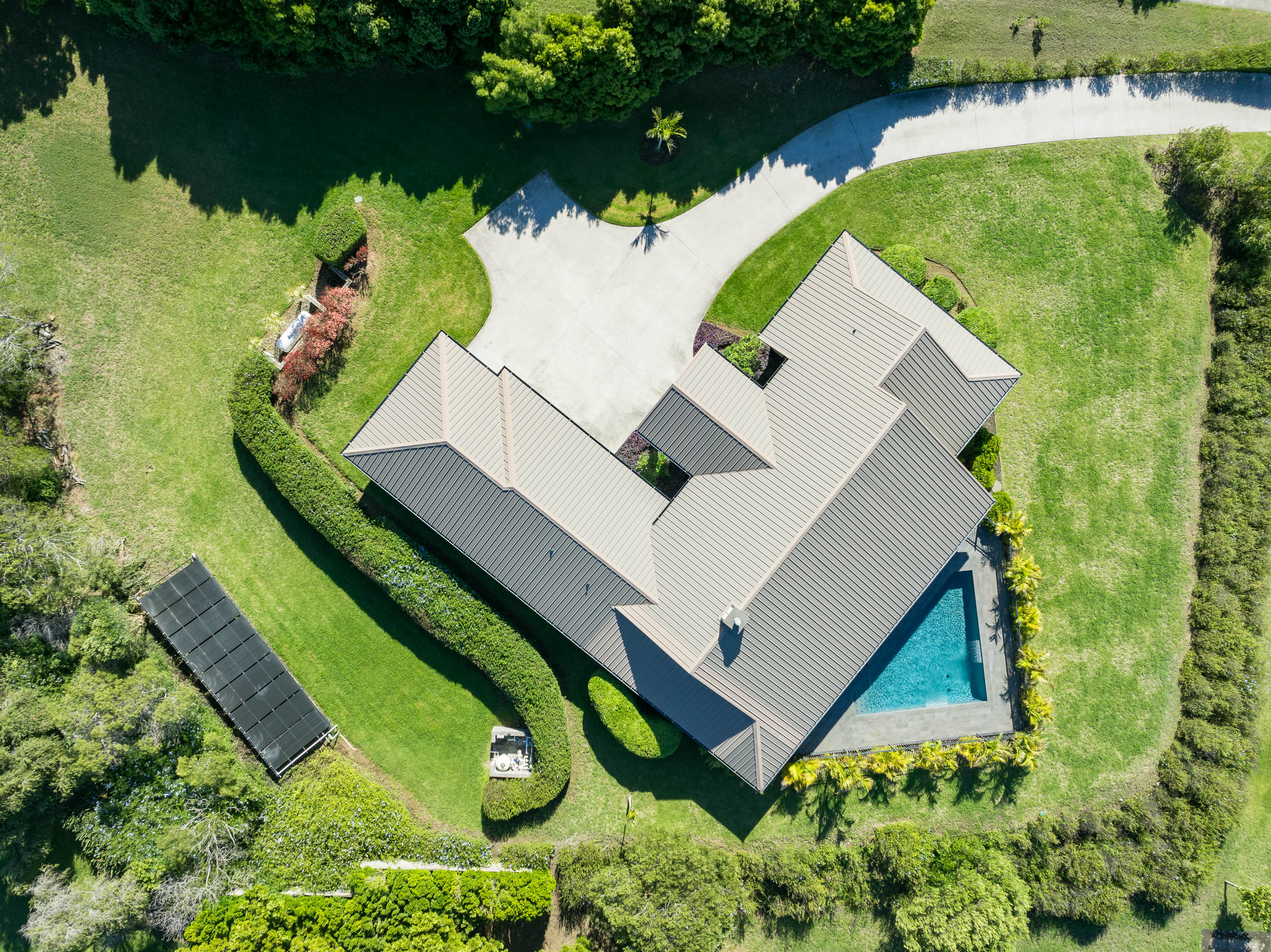 Experience refined living in this 3-bedroom, 2.5-bathroom residence located in the sought-after Sandalwood neighborhood of upcountry Waimea on the Big Island. Designed in 2017, this home rests on a one-acre corner lot with panoramic views, a heated pool, and spacious interiors that highlight both style and comfort.The covered entry sets a welcoming tone, leading into a residence with 16-foot ceilings and an open layout. Living, dining, and kitchen areas flow seamlessly together, creating a setting that feels both grand and inviting. The kitchen features new stainless steel appliances, a gas range, and a refrigerator, providing modern convenience with timeless design. Expansive windows frame views of the Kohala mountains, rolling pastures, and distant ocean horizons, filling each room with natural light.Outdoor living is central to the property. A wide lanai extends the interior space and is ideal for outdoor dining, gatherings, or quiet evenings. The heated pool provides year-round enjoyment in Waimea’s temperate climate. Mature landscaping surrounds the property, adding beauty and privacy that enhance the setting.The three-car garage allows ample storage for vehicles and recreational equipment, with space that supports both convenience and lifestyle needs. The home is offered furnished or unfurnished, excluding personal items, making it possible to move in with ease or design with personal touches.Sandalwood is known for its spacious lots and sweeping outlooks. The location combines the quiet of upcountry living with quick access to Waimea town, where dining, shopping, schools, and healthcare are close at hand. This residence reflects the best of Waimea living, blending luxury design with the natural beauty of Hawaii Island.
