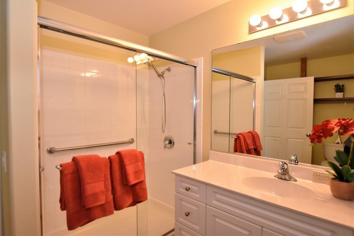 The huge primary bedroom has more than enough space to accommodate a king size bed and really make it into your own relaxing retreat. The primary bathroom offers dual sinks, water closet, and a beautiful, updated walk-in shower. Plus, you'll love the large walk-in closet with custom touches.