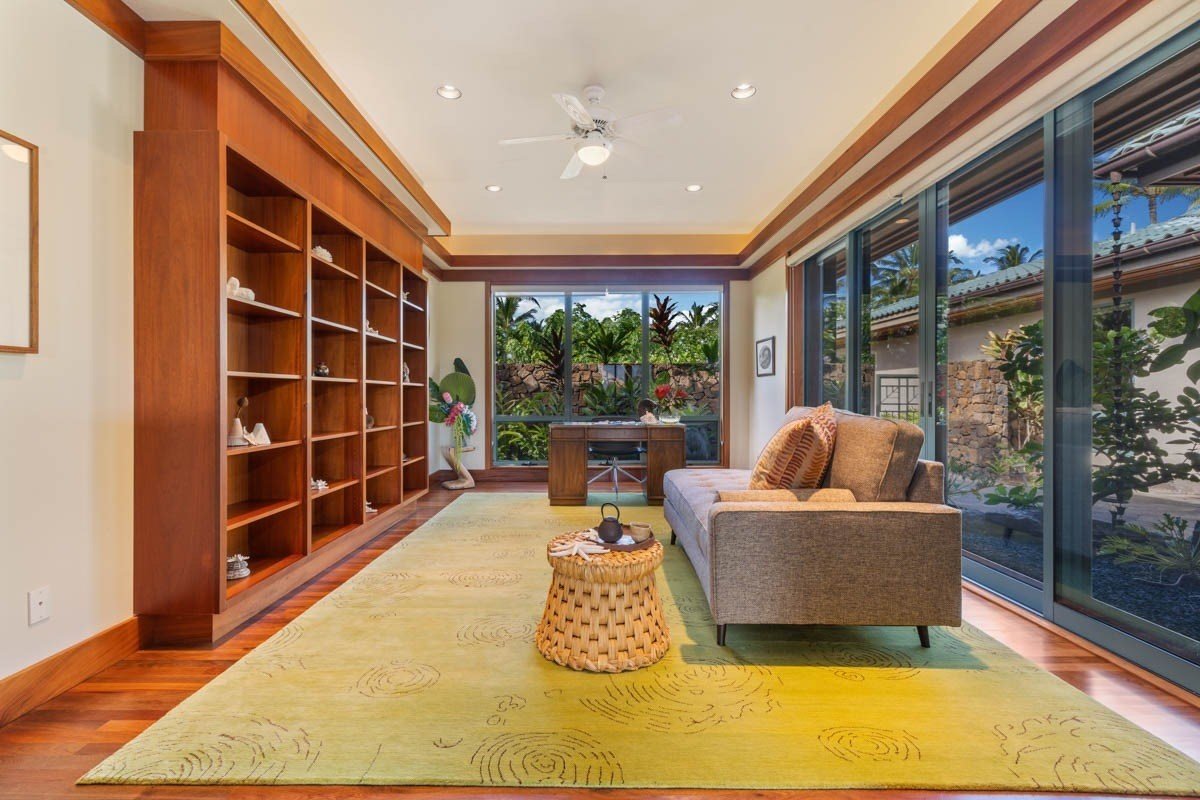 This stunning single family home could be yours! Move in now! Nestled in the heart of the Mauna Lani Resort area along the Kohala Coast of the Big Island of Hawaii, enjoy island living at its finest, on over half an acre!~Walk on native Hawaiian Ohia hardwood floors throughout, tiled bathroom flooring ~9 foot+ ceilings throughout gives spacious open and elegant feel ~Honduran Mahogany cabinets accent finely crafted and stained concrete counter tops ~Pocket door sliders inviting tropical breezes ~Office/den has built-in bookshelves and can be used as a guest room ~Great room is ideal for formal dining or entertaining, opens to covered lanai with views of the Kohala mountains ~2 en-suite bedrooms have full bathroom and access to the outdoor private garden shower, wash sandy feet from the beach or shower under the stars ~Master bedroom/suite is set away from bedrooms, giving added privacy ~Pamper yourself in the custom, all-in-one furo inspired sunken spa/bath/shower in the master suite ~Laundry room with sink and extra storage ~Spacious garage with storage closet and gardening/work table ~24,391 square feet of land area landscaped with plumeria, red ginger, coconut, lemon and mango tree ~Inspired by a Frank Lloyd Wright design, Architect Harrell McCarty captures use of island elementsResidents of Champion Ridge enjoy a common, 2 acre greenbelt with an herb garden and fruit trees: lemon, lime, orange, grapefruit, fig, lychee, banana, and mango. Champion Ridge is tranquil and gated subdivision with homeowner's fees among the lowest in this resort community.Minutes from Mauna Lani Auberge Resorts Collection, Fairmont Orchid, dining, shopping, golfing, and the Mauna Lani Beach Club situated on white sandy beach quintessential for snorkeling, whale watching and sunset sailing. 35 minute drive from Kona Airport. All information deemed reliable and not guaranteed. Buyers & Buyer's Agent do own due diligence.