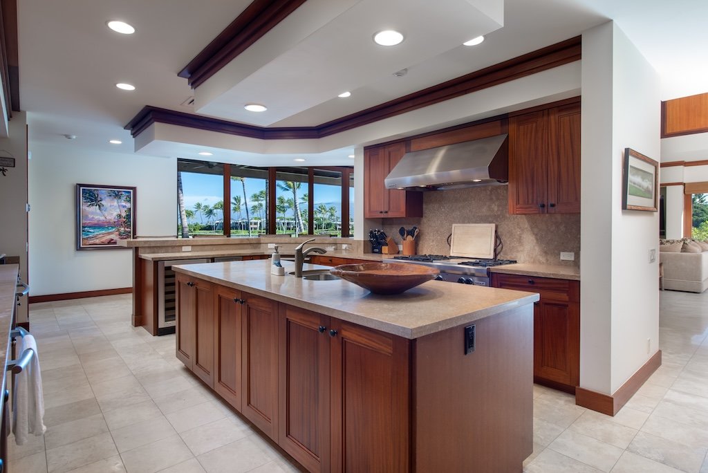 Incredible offering !!! Designed by Lucky Bennett, built by Clever this classic Hawaiian resort residence is a timeless expression of island architecture, craftsmanship, and indoor-outdoor living. Set on over one acre within the prestigious Black Sand Beach enclave, the home enjoys astonishing ocean, fairway, and mountain views from its elevated setting.Offering 5 bedrooms plus a large media room, easily converted to a 6th bedroom and 5.5 baths, the residence encompasses 5,292 square feet of interior living space, thoughtfully designed for privacy, comfort, and entertaining. The lower level features three spacious bedroom suites, while the upper level includes two additional bedroom suites with a shared sitting area, ideal for guests or family.A graceful circular driveway leads to a dramatic entry courtyard with tranquil ponds, creating a memorable sense of arrival. From there, the home opens into a soaring great room with vaulted ceilings, rich wood detailing, stone floors, expansive pocket doors, and oversized mahogany shutters that frame the breathtaking views beyond. The gourmet kitchen is appointed with granite countertops and integrates seamlessly with the main living spaces.Outdoor living is elevated with an infinity-edge pool and spa, built-in BBQ, and lush tropical landscaping, creating a private resort setting perfect for sunset entertaining. Offered fully furnished, this exceptional home embodies the elegance, comfort, and lifestyle of luxury resort living in Hawaiʻi.The oceanfront Beach Club features a 25-meter lap pool, spa, cold plunge, steam and dry saunas, a fully equipped fitness center, tennis court, and elegant indoor-outdoor gathering spaces with catering kitchen, BBQ areas, cabanas, and wine storage. Owners enjoy direct access to the black sand shoreline at Honokaʻope Bay, ideal for swimming, snorkeling, paddling, and sunset viewing, along with kayak and canoe storage and concierge services.