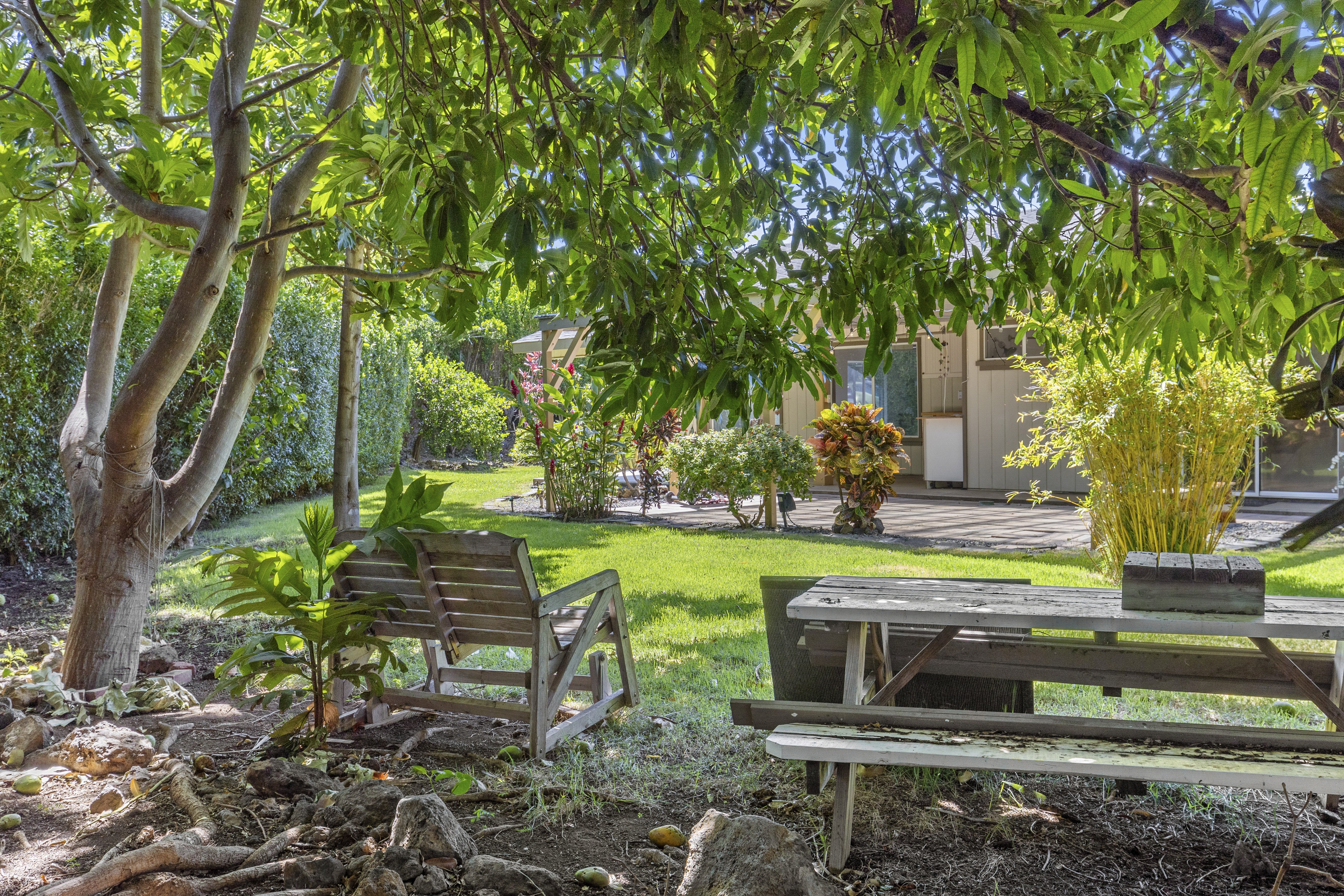 So peaceful! This nearly 1,600 square foot three bedroom, two bath home in Waikoloa’s Sunset ridge is set back amid a stunning private garden.The main living area features open beam ceilings and oversized picture windows overlooking the gorgeous surrounding landscape. Granite countertops and ample cabinetry can be found in the kitchen, which opens conveniently to the dining area. Double slider doors connect the main living space to the lush outdoors. Step outside to a tranquil back yard setting including covered patio areas, providing a perfect outdoor gathering place. Here you’ll find a bounty of tropical fruit trees including mango, bread fruit, meyer lemon, tangerine and lime. Decorative plants add color and character, while a mature hedge maintains privacy/The home’s three bedrooms are set back from the main living space, while the master suite enjoys a walk-in closet and direct access to the gardens.A new split air conditioning system was installed in 2023 and keeps things cool on hot summer days, while new paint and LED lighting fixtures were completed in 2024. A leased solar system with battery backups was installed in 2019 (details uploaded in MLS and available upon request).The two-car garage is extra deep, and features plenty of built-in storage, along with a large worktop, while a dedicated interior laundry room sits between the main living area and the bedrooms.Waikoloa Village itself is ideally situated just above the Big Island’s premier beach and resort districts and is known for its breezy, sunny climate. Two shopping centers are centrally located within the development, along with a community pool and a Robert Trent Jones Jr. designed golf course. The town of Waimea, with its famed open markets and award-winning dining options is a short distance to the north, while Kailua-Kona is roughly 45 minutes by vehicle to the south.
