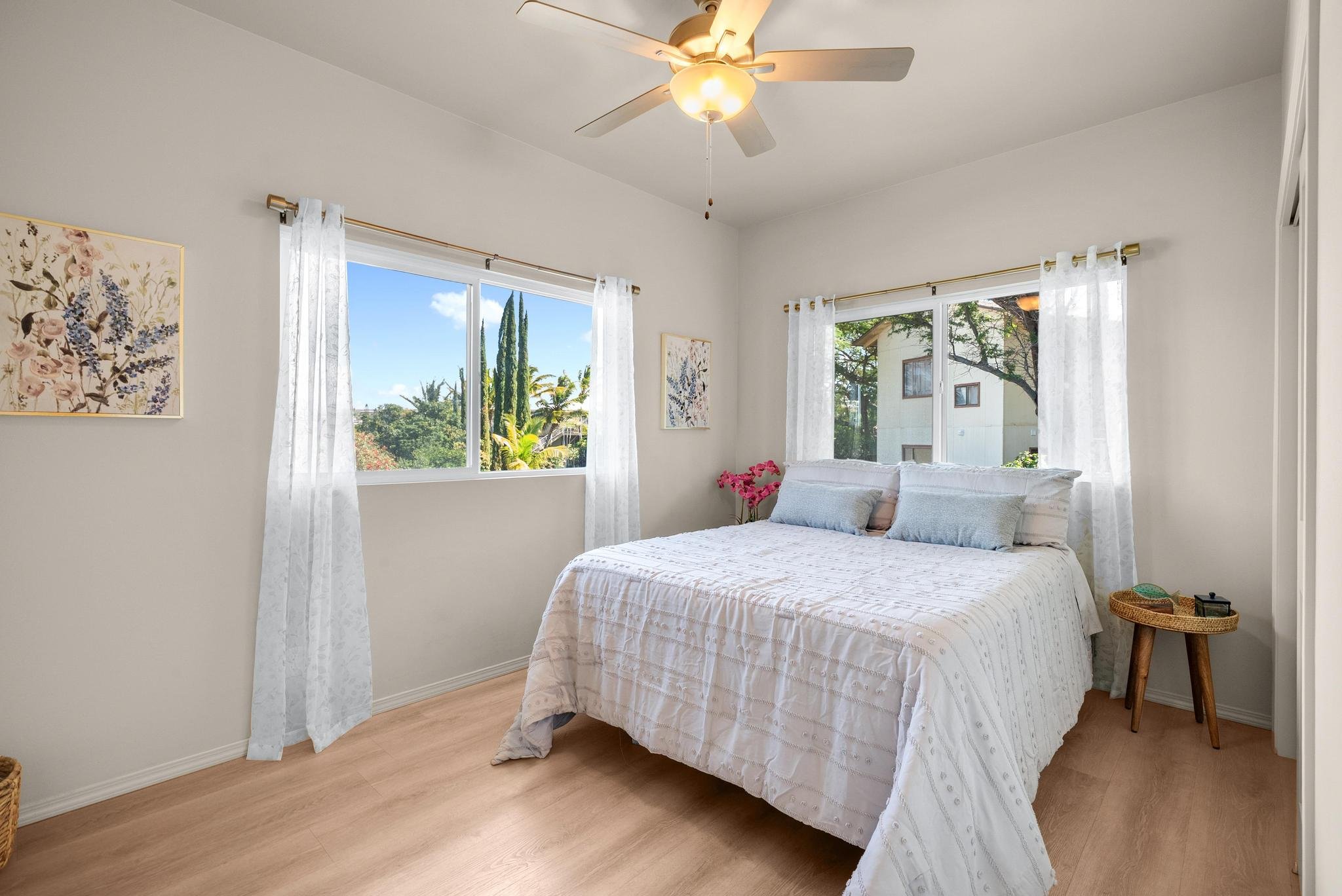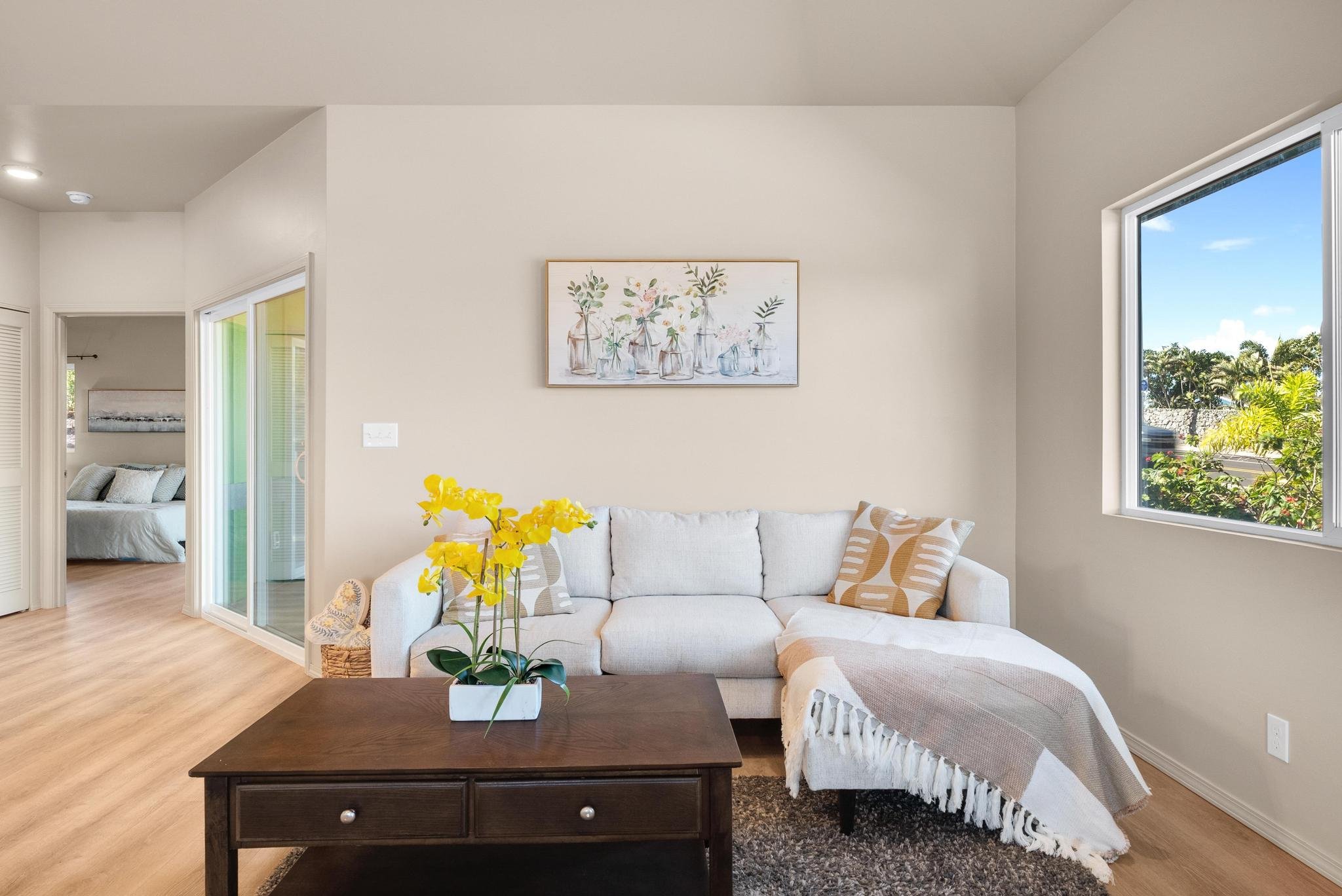Welcome to this beautifully crafted 2024-built home in Waikoloa Village, offering modern island living with stunning mountain views and thoughtful design throughout. This 3-bedroom, 3-bath residence features an open-concept kitchen and living area, creating a bright and inviting space perfect for everyday living and entertaining.The spacious primary suite provides a peaceful retreat, while the walk-out lanai seamlessly connects indoor and outdoor living—ideal for enjoying Hawaiʻi’s year-round climate. Step into the large, fully landscaped backyard, where existing fruiting citrus trees set the stage for expanding your own orchard or garden oasis.Adding exceptional value, the detached two-car garage includes a full bathroom and a finished bonus room, offering flexible options for guests, a home office, gym, or creative space. Thoughtful landscaping enhances the curb appeal and completes this move-in-ready property.This is a rare opportunity to own a newer home with space, views, and versatility in one of the Big Island’s most desirable communities.