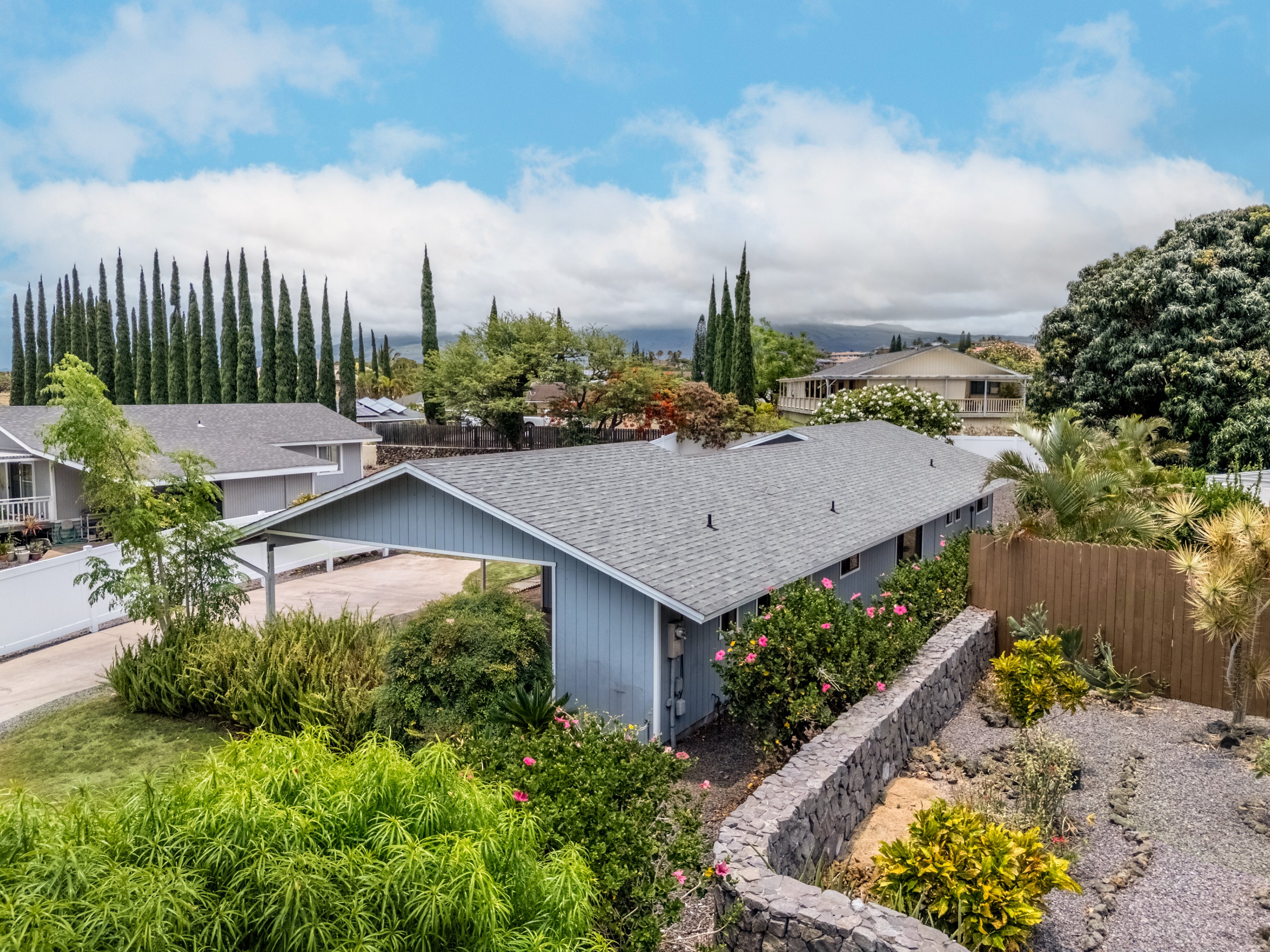 Nestled quietly in a cul-de-sac, this 3-bedroom, 2-bath Waikiloa Village home suggests comfort, community, and potential. Gently lived in and focused maintenance, with many recent deferred maintenance completed, nicely landscaped for easy care, with beautiful garden flowers. The spacious, usable lot offers room for potential expansion. You will be a part of the Waikoloa Village Association, and membership is mandatory. This includes access to community amenities such as pool, tennis courts, and discounted golf at the Village course. Click on Virtual tour for ideas! *Enhanced & Virtually staged.