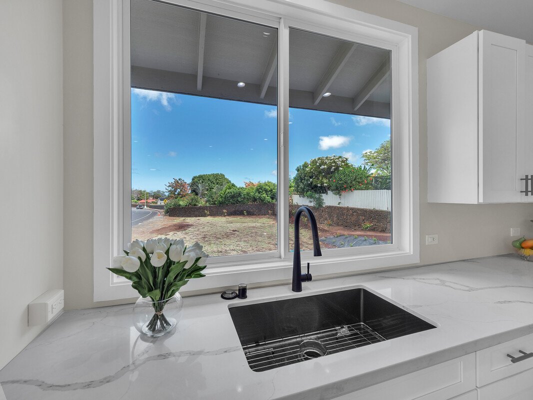 HUGE $100,000 PRICE REDUCTION!!! FANTASTIC VALUE FOR A BUYER WHO WANTS A BRAND NEW, 3 BEDROOM, 3 FULL BATH, SINGLE LEVEL, 2252 SQ FT HOME W/ BEAUTIFUL FINISHES AND A LOW PPSF UNDER $440., ESPECIALLY WHEN COMPARED TO OTHER NEW CONSTRUCTION SALES! ALL YOU NEED IS VISION FOR PRIVACY FENCING, LANDSCAPING AND SPLIT AC. POTENTIAL FOR A POOL!! This single level house is on an oversized 16,000 square foot lot and the interior was designed in neutral tones, perfect to complement any color palette. Features include quartz countertops, quality LG appliances, pot filler faucet, sleek matte black hardware, seamless ceramic tile flooring, tiled walk in showers, a laundry room that offers storage and has a extra sink for convenience. Large windows show off the stunning evening colors of sunset, while the kitchen and primary bedroom enjoy partial ocean views. The automated irrigation system is in, the spacious side yard has been seeded and the grass is getting greener by the day. Lovely flowers and weed cloth are also planted and the cement driveway leads from the cul de sac entrance to a large two car garage, all one level for easy living.The attractive pricing reflects the fact that no privacy fencing was installed but that is a pretty easy fix and you can choose the style, color, material and height that suits your preferences. If you want value, modern construction, single level, ADA friendly showers, and a price point that instills confidence in your purchase, this could easily be a private oasis while enjoying a front‑row seat to all the conveniences that Waikoloa Village has to offer.The Village HOA dues are a reasonable $90 per month and entitle owners to enjoy the amenities of the community pool, tennis court, and Waikoloa Village golf course with owner discounts.If you want a pristine, new home at a very attractive price per square foot, lots of space between you and the neighboring homes, this may be the right property for you!