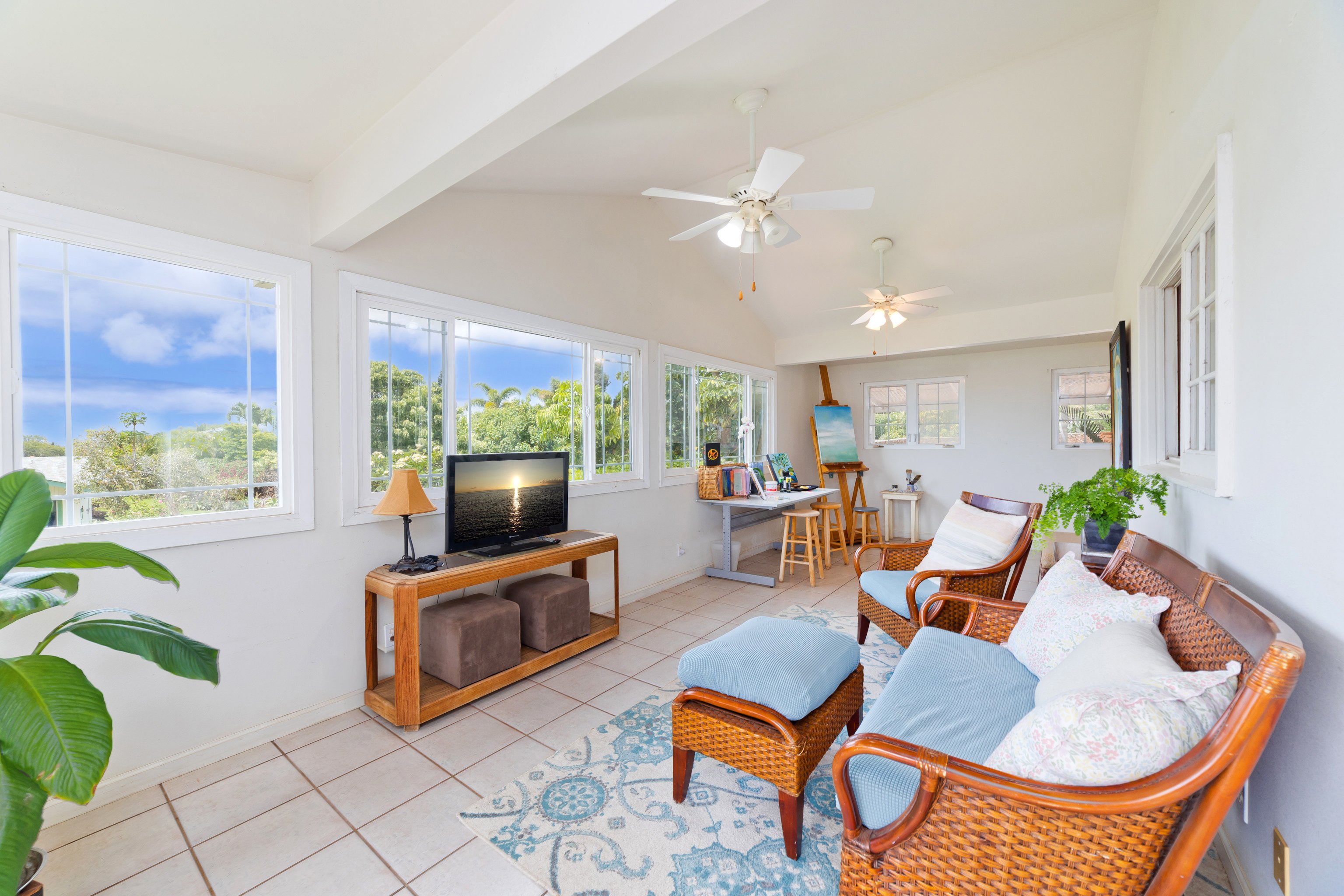 Perched high on a bluff in the coveted Waikoloa Village, this exquisite corner lot home offers views of the ocean, sunsets, and the enchanting Kohala Mountains. Designed to maximize natural light and the soothing trade winds, this single level residence(except for sunken Living room) provides a private retreat.An enclosed lanai makes this home much larger boasting over 2,000 sq.ft. of living space, this 3-bedroom, 2.75-bath home is perfect for entertaining. * Home Features: Enjoy vaulted ceilings, sunken Living room with the cozy ambiance of a lava rock wall fireplace with sun filled window seat perfect for gatherings.Dedicated office space and eat in kitchen with large dining room with built-in display cabinets. *Enclosed Sun room: A wrap-around sun room offers ocean views and is ideal for quiet reading, TV, or an art studio. *Outdoor Entertaining: A generous lava rock courtyard and covered decking provides an inviting space for hosting events or for enjoying your morning coffee in a lush, flowering landscape. *Energy Efficiency: The home is equipped with solar panels featuring net metering, ensuring low energy costs and sustainability. *Expansive Yard: There is a concrete patio that spans the length of the home, complete with shade cover and privacy-enhancing rock and fence walls. A mature Meyer lemon tree thrives in the herb garden area, while the side yard boasts a vibrant lawn and a fruiting mango tree. The front yard with tiered rock gardens, Norfolk pines for shade and lush landscaping captures the ocean views. *An upgraded bathroom (2023): Features a walk in shower. A 2 car garage with storage and a dedicated laundry room with 3/4 bath attached. The Waikoloa Village offers the World-class Robert Trent Jones II designed golf course and amenities including stables and a sporting complex with pool,tennis, pickle ball and a short walk to a nearby park. The best beaches & resorts just a 15 minute drive away. Make this home yours today!