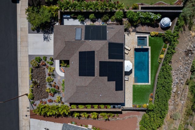 With sustainable energy provided by a Tesla Powerwall and photovoltaic system, this residence offers nightly sunset vistas, sweeping views of both the ocean and the distant island of Maui, and a true island paradise ready for you to call home.