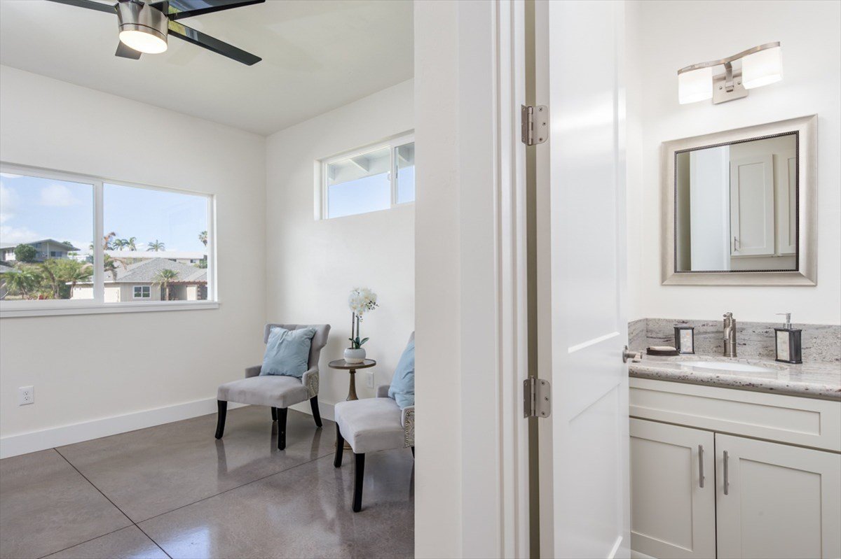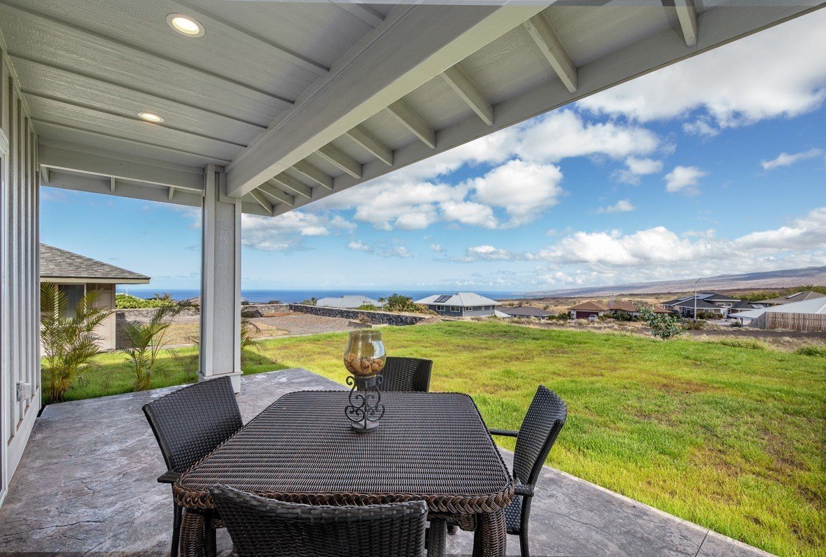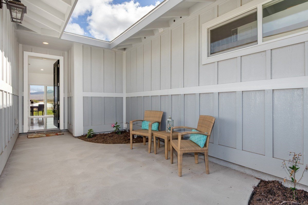 Good things come in small packages! Enjoy beautiful ocean, Maui and coastline views from inside and out of this brand new, single level 3 bedroom and 3 full bath home! Efficiently designed floor plan includes a separate suite, (bdrm/bath #3) - with kitchenette sink and counter - and can be accessed from either the exterior courtyard -OR from interior! Perfect for family, guests or potential income! Crisp finishes, expansive slider doors in the living area, chic polished concrete floors, granite counters, 9 foot doors, vaulted and high ceilings make this home light and bright! The en-suite Master has ocean views and a sliding barn-door to a spacious bathroom. Extend your living to the tropical outdoors on the spacious covered lanai with ocean, coastline and mountain views! Both front and back yards are expansive, landscaped and irrigated.This special home located in the consistent newer Kilohana Kai neighborhood is special and waiting for you...~Great room concept with vaulted ceilings! ~Outdoor living made easy! Spacious lanai with sensible access from kitchen and Master to back yard. ~3 bedroom/3 FULL bath *Master bedroom en-suite has access to lanai, granite counters, tile to ceiling and stone floors in shower, dual vanities, walk in closet. *Bedroom #2 with discreet hall access to full bath #2. *Bedroom #3 can be separate living space OR utilized as part of home. En-suite with kitchenette sink/counter and entry from indoor or out. ~Kitchen with beautiful granite, Shaker cabinets, Island + Pantry Cabinets ~Interior Laundry ~Finished 2 car garage ~Landscaping and irrigation included*Waikoloa Village Membership offers world class Golf Course, tennis courts, pool *Grocery, bank, PO, restaurants, etc at your fingertips *Hawaii’s premier white sand beaches, golf and finest Kohala Coast Resorts are only 15-20 minutes away