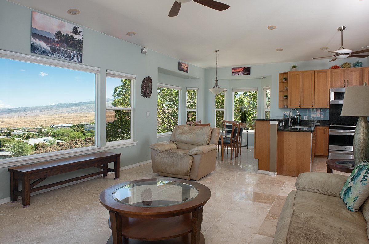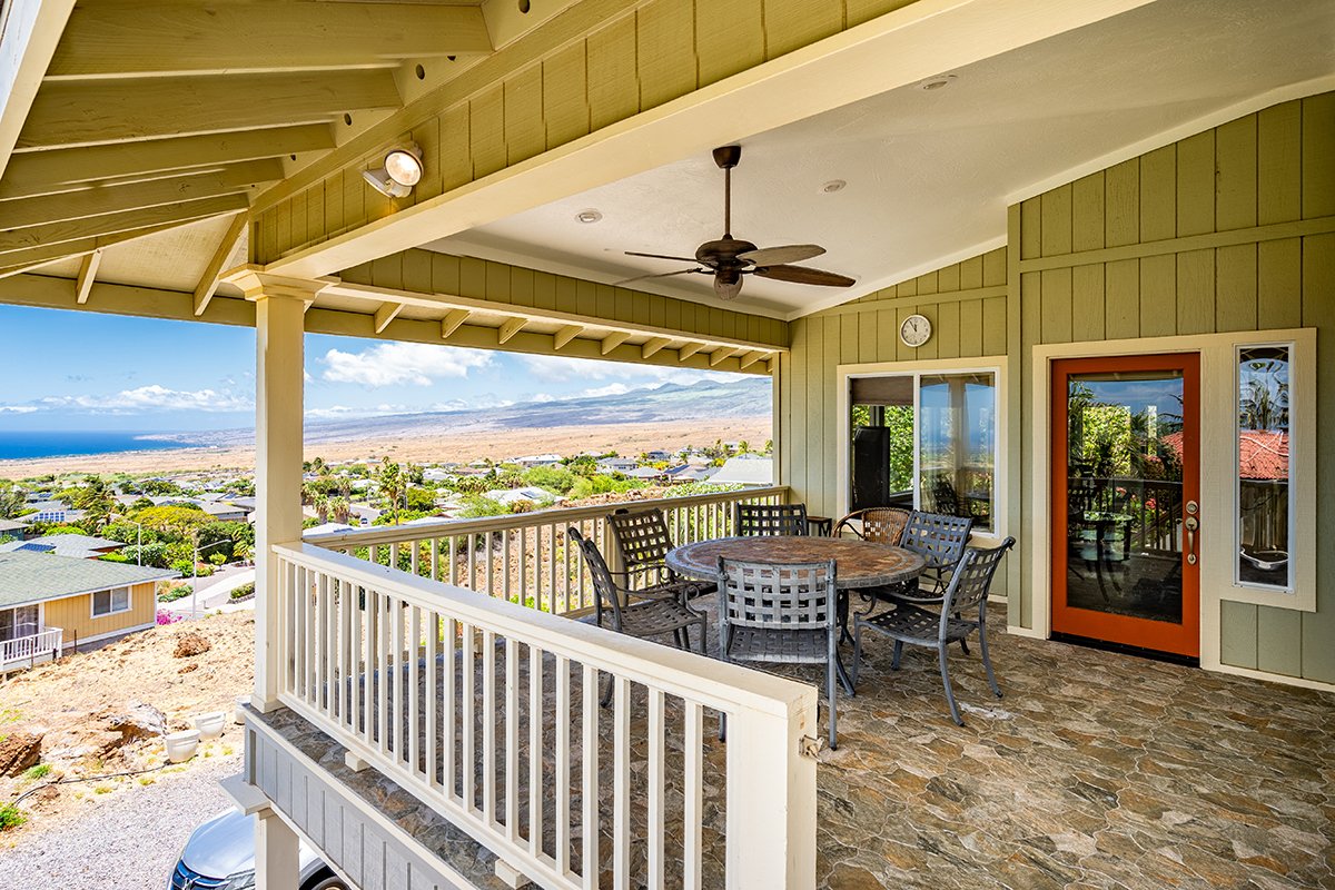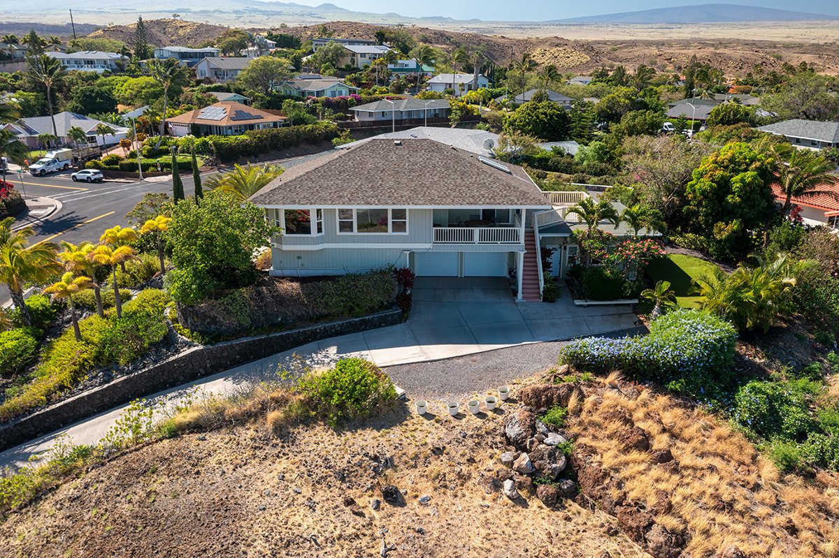 Stunning Oceanview Hilltop Home with Separate Ohana- Views to take your breathe away! Perched on a peaceful hillside, this 4 bedroom 3 bathroom home offers sweeping panoramic views the Pacific Ocean, iconic Mauna Kea, Kohala Mountains and Hualalai. From sunrise to sunset the vistas are simply unforgettable- perfect for unwinding and watching the day drift by. There is split air from the main house and Ohana and a fully owned PV system. The upper level features 3 bedrooms and 2 bathrooms, a spacious open living area, and a beautifully tiled stone lanai that flows effortlessly onto a covered lanai-ideal for indoor-outdoor living and entertaining. Downstairs, a separate Ohana unit with its own kitchen and private entrance offers flexibility for extended family or guests. This is your chance to live above it all-don't miss this rare opportunity to own one of the most captivating view homes on the island! There is also solar voltaic panels to capture all the sun of the day for low energy bills. The owner purchased the adjacent lot to protect the stunning view-and now, we're offering that lot at a discounted price exclusively to the Buyer of this home. Imagine the possibilities: you could landscape, add a pool, and transform this into a truly spectacular compound. There's incredible potential here to create a one-of-a-kind estate! A must see for those prestigious clients that must have the best view possible!