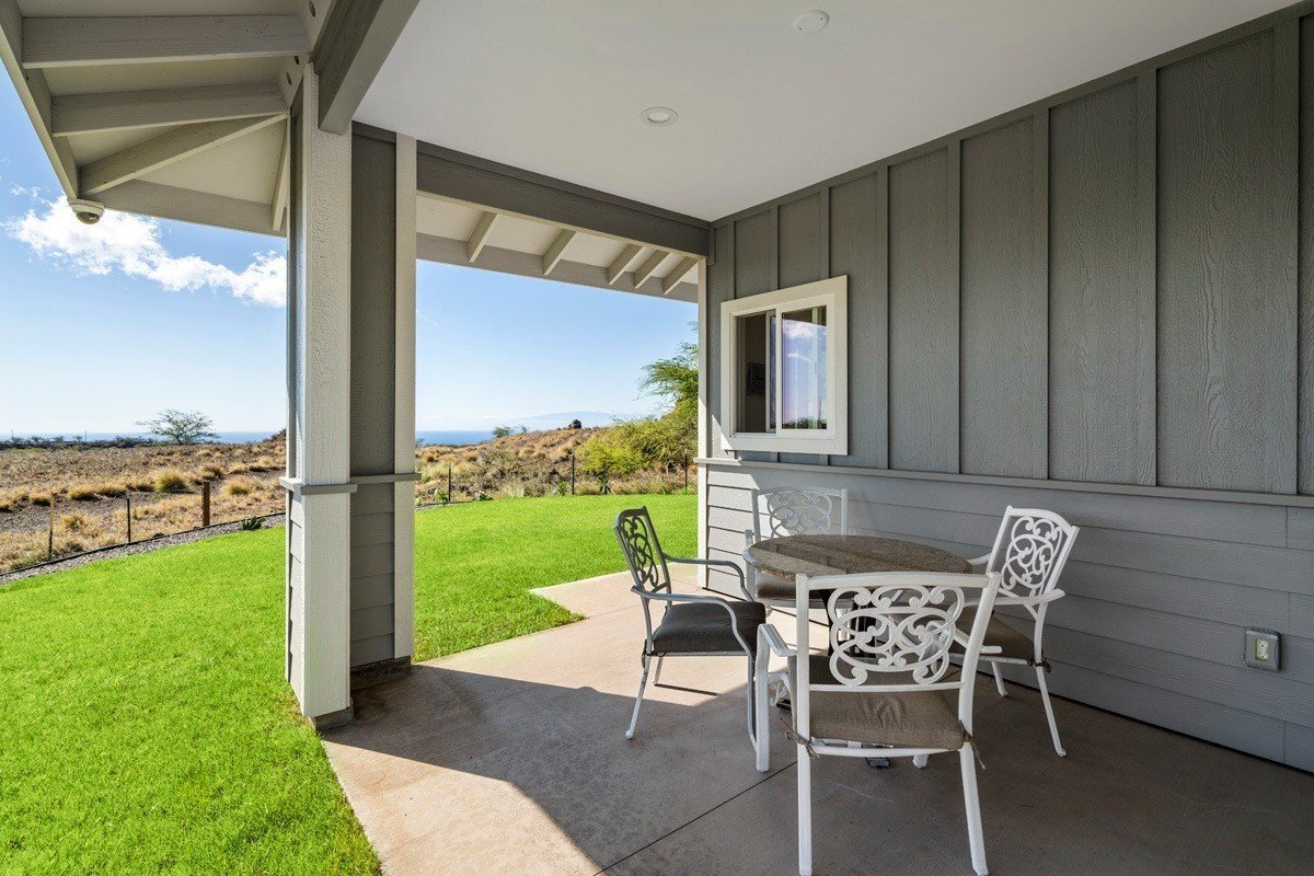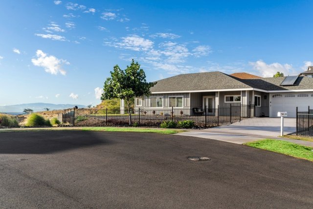 Completed in 2020 this newer, single-level resort-like 3 bed 2 bath custom home features ocean, coastline, sunset, Hualalai and Mauna Loa views. Located at the end of a quiet cul-de-sac in the prestigious Wehilani at Waikoloa Community, yet conveniently close to Waikoloa Village shopping center and a quick drive to the Kohala Coast beaches and resorts, this home offers a popular floor plan with spacious living room separating master bedroom from 2nd & 3rd bedroom/office. This modern home offers premium black stainless appliances, hardwood throughout, in-wall communication hub to house high speed modem, 7 dedicated data ports with Cat5e cabling throughout, Leviton’s new Load Center with Wi-Fi connectivity for remote monitoring, diagnostics, and control, and a spacious 2-car garage with electric car charger outlet. Additional features: ~Grand 9’ & 10’ ceilings throughout. ~Large windows & sliding glass doors, with built-in blinds. ~French oak engineered hardwood plank flooring with premium padding throughout. ~Soft closing high-quality cabinetry in kitchen, bathrooms & laundry. ~LED lighting throughout. ~Large kitchen with quartz countertops, under-cabinet lighting, premium black stainless Energy Star KitchenAid refrigerator, convection oven & cooktop, microwave, & dishwasher. ~Master bedroom with ocean view, luxurious ensuite bathroom, large walk-in closet. ~Large master shower with frameless glass door enclosure, hand-etched Hawaiian glass shower panel, quartz countertop & dual sinks. ~French door entry to third bedroom/office featuring mountain view. ~Dedicated laundry room with large capacity Maytag washer & dryer, cabinets, quartz countertop with folding area & sink. ~Leviton Load Center, industry’s most intelligent circuit breaker system, app provides energy management options via smart phone. virtual tour link: https://tours.HawaiianVirtualTours.com/1893327?idx=1