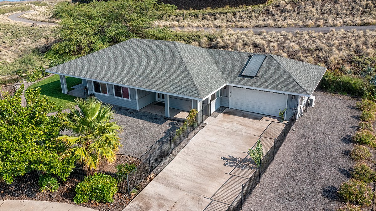 Experience a resort feel with sweeping ocean, coastline, sunset, Hualālai, and Mauna Loa views from this private, resort-style 3-bedroom, 2-bathroom single-level custom home in the prestigious Wehilani at Waikoloa community. Completed in 2020, this elegant residence captures the essence of modern island luxury with refined design, quality craftsmanship, and serene surroundings.Nestled at the end of a quiet cul-de-sac, the property offers exceptional privacy — no front neighbors, a garage buffering the back neighbor, a scenic trail to the left, and a service road on the right. Step outside to a tranquil 30-minute nature walk leading to a wind turbine lookout, or enjoy unbeatable convenience to Waikoloa Plaza (2 min), Waikoloa Beach Resort (10 min), Waimea (20 min), and Costco (30 min).As part of the Waikoloa Village Association, residents enjoy resort-style amenities: a heated pool with lap lanes, Keiki pool, tennis and pickleball courts, a Robert Trent Jones Jr.–designed golf course, clubhouse restaurant, and community horse stables.Inside, the open-concept layout features 9 ft ceilings, large picture windows, and French oak engineered hardwood floors throughout. Highlights include: • Quartz countertops & soft-close cabinetry • LED lighting & under-cabinet illumination • KitchenAid black stainless appliances • Laundry room with quartz folding area, sink & Maytag washer/dryer • Spacious 2-car garage with EV charger outletThe primary suite offers ocean views, a frameless glass shower with etched Hawaiian panel, dual vanities, and a walk-in closet.A rare blend of privacy, elegance, and resort living, this home invites you to experience the best of Hawaiian luxury every day.