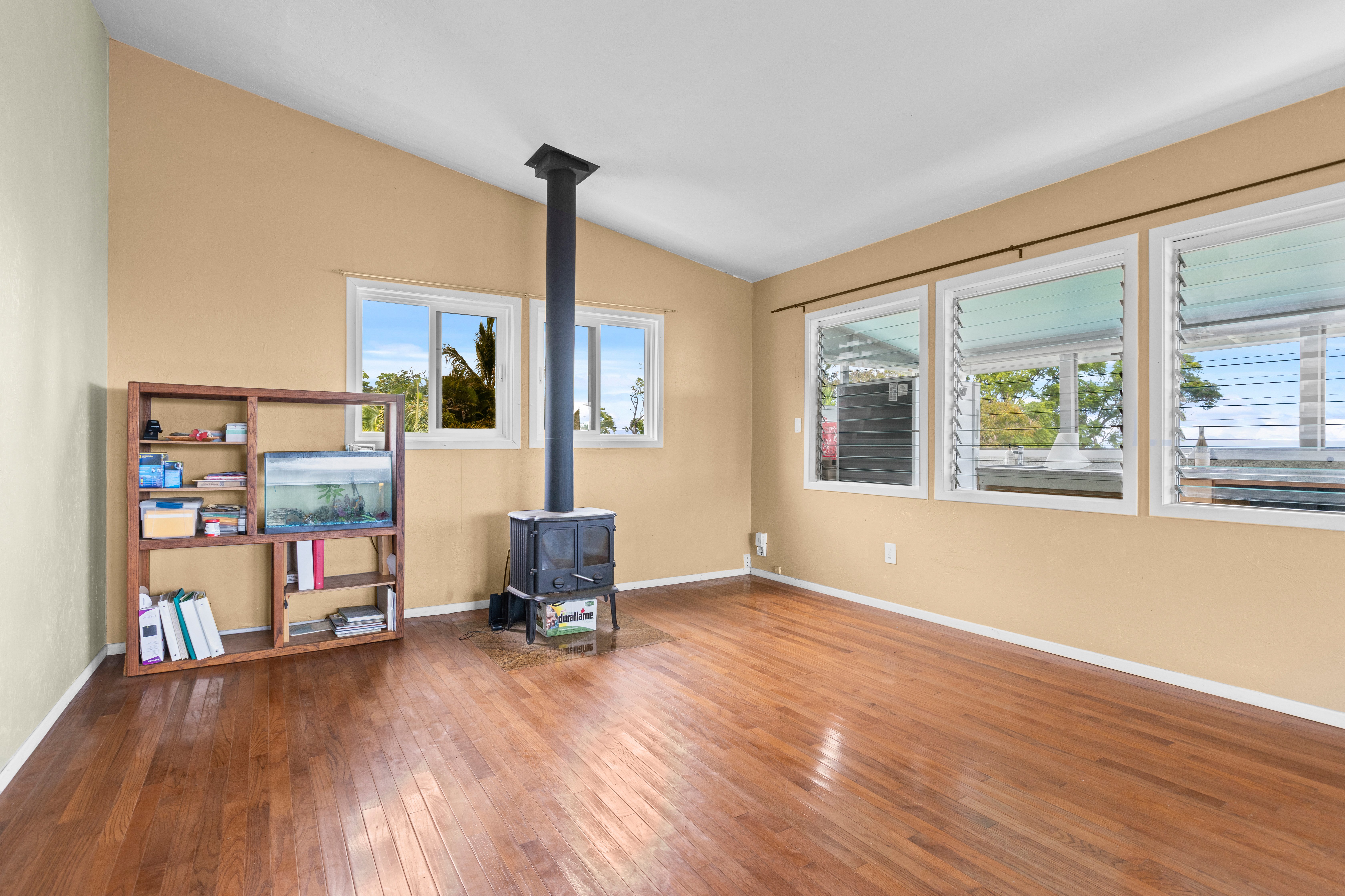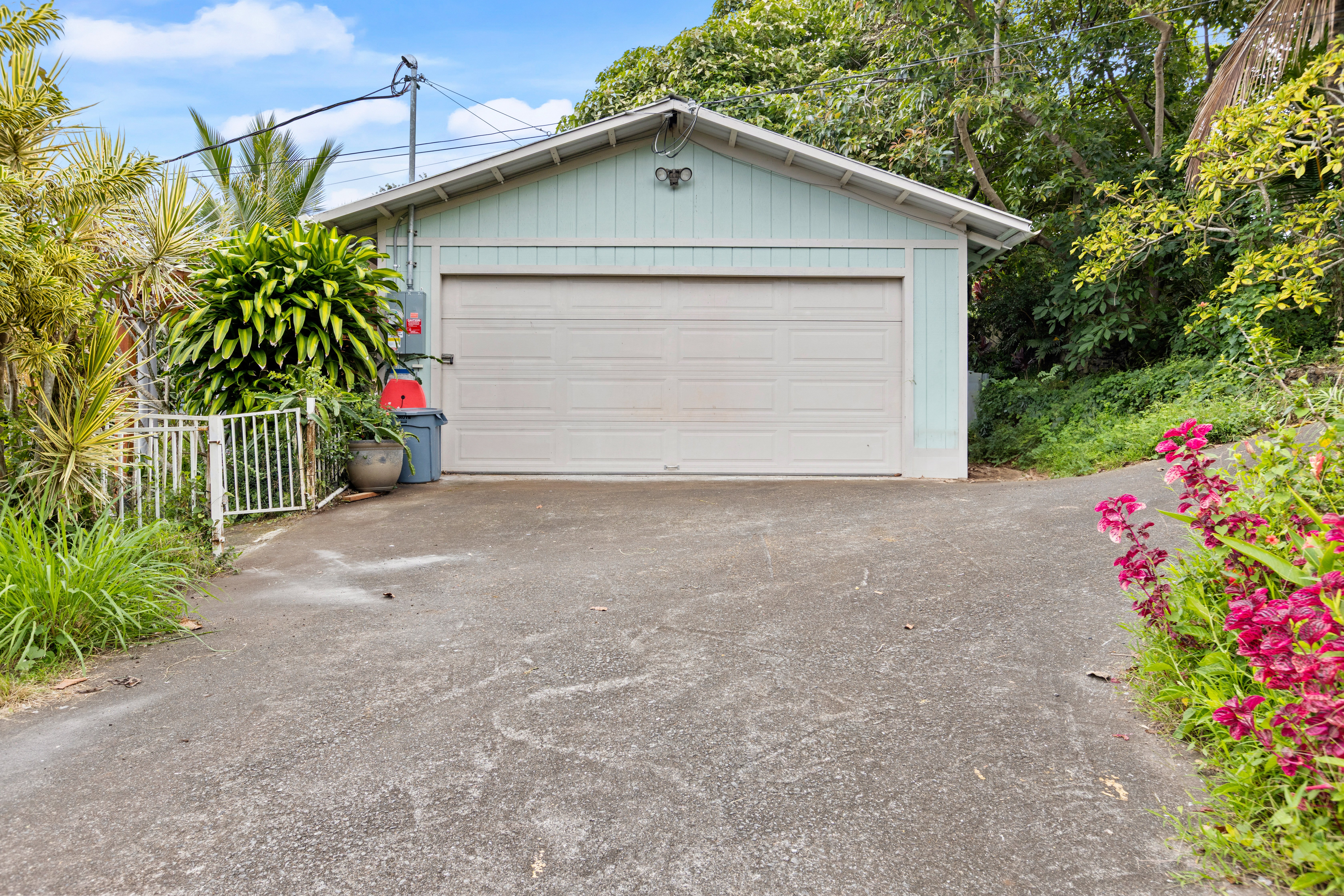 Tropical Oasis at the Ideal Elevation in the hills of Kona. Perched at the ideal elevation in the cool hills of Kona, this freshly painted, beautifully maintained two-story home offers sweeping ocean views. With its airy, light-filled interiors and flexible layout, it’s the perfect retreat for multi-generational living or anyone craving space, comfort, and a deep connection to nature. Step inside to discover a well-designed floor plan featuring 4 spacious bedrooms, 3 tastefully updated bathrooms, two inviting living areas, and covered lanais on both levels—perfect for enjoying the cooler temperatures, ocean breezes, and outdoor meals with family and friends. The generously sized, fully fenced yard is a true island sanctuary, lush with mature fruit trees including mango, orange, starfruit, fig, guava, lemon, lime, avocado, dragon fruit, and Hawaiian chili peppers. There’s plenty of open lawn space for relaxing, gardening, or play. The property even has space for a chicken coop, as enjoyed by previous owners. A detached two-car garage, along with additional parking for at least four more vehicles, makes this home ideal for large families or entertaining guests. Enjoy major energy savings with a prepaid 22-year solar system, and peace of mind thanks to a newer septic system.