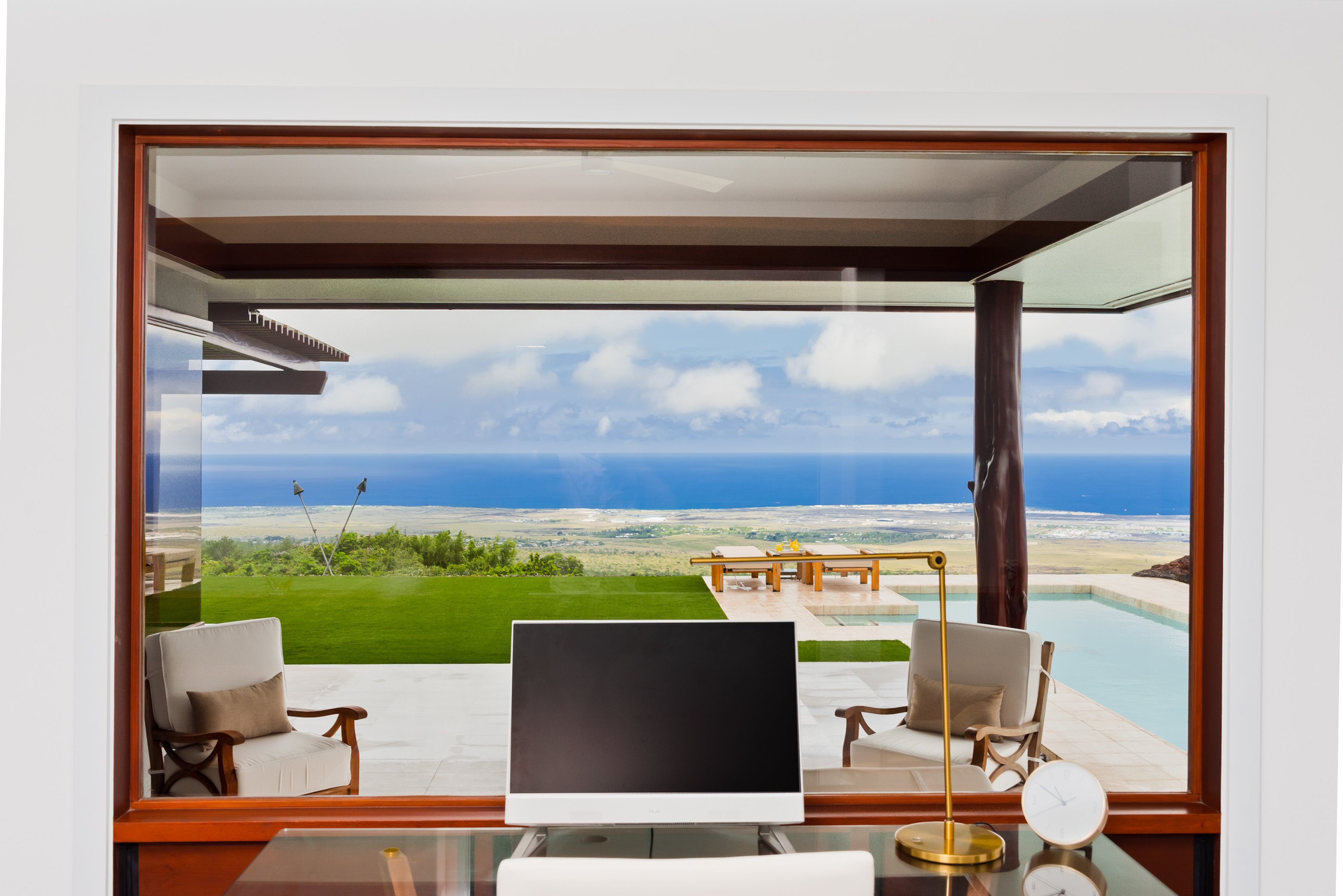 Welcome to your dream Hawai‘i retreat—where modern design meets island serenity. This stunning single-level 4-bed, 3-bath custom home sits at a perfect 1,165-ft elevation with refreshing tradewinds and spectacular 180° ocean views from Kona to Maui!