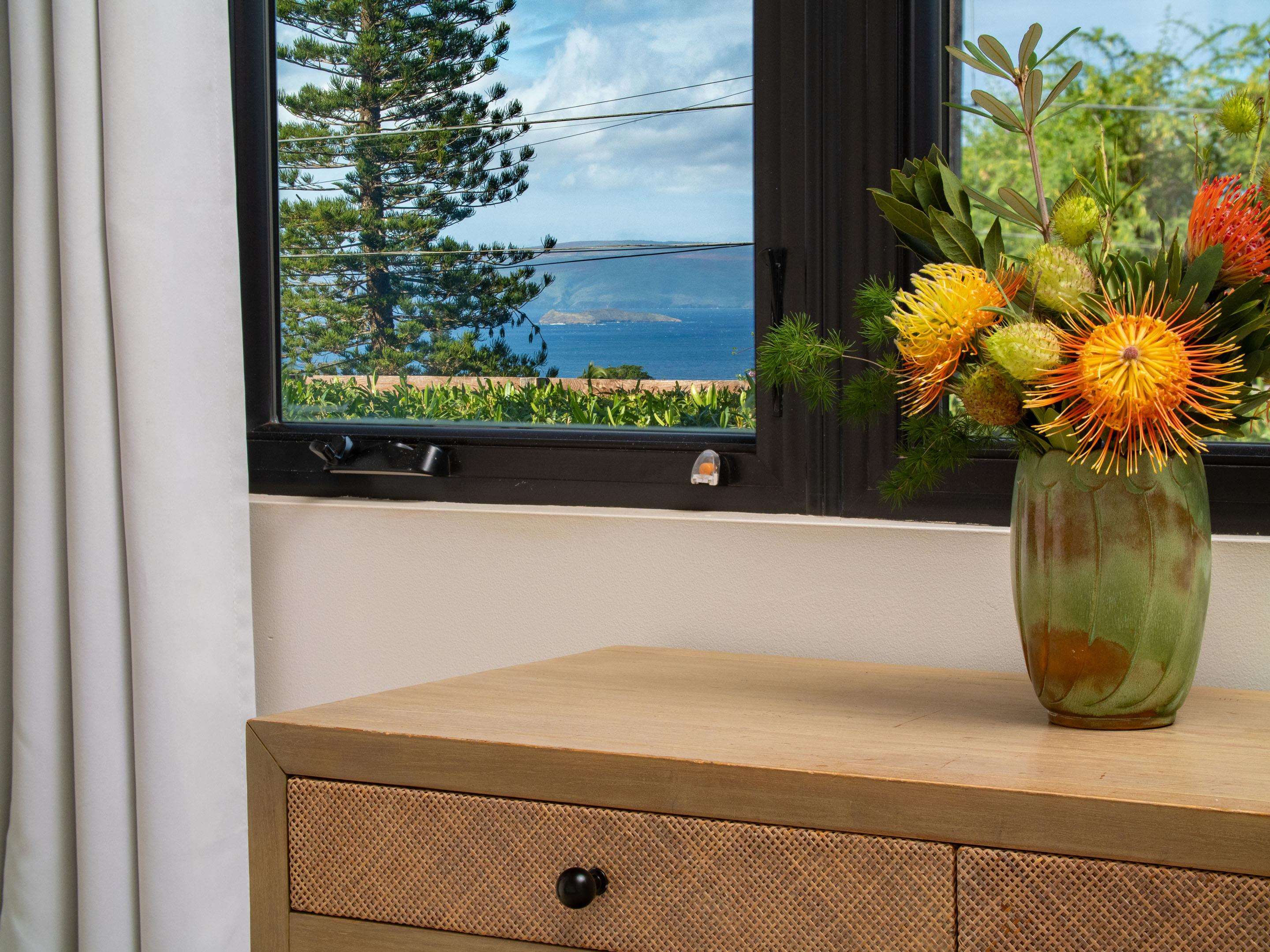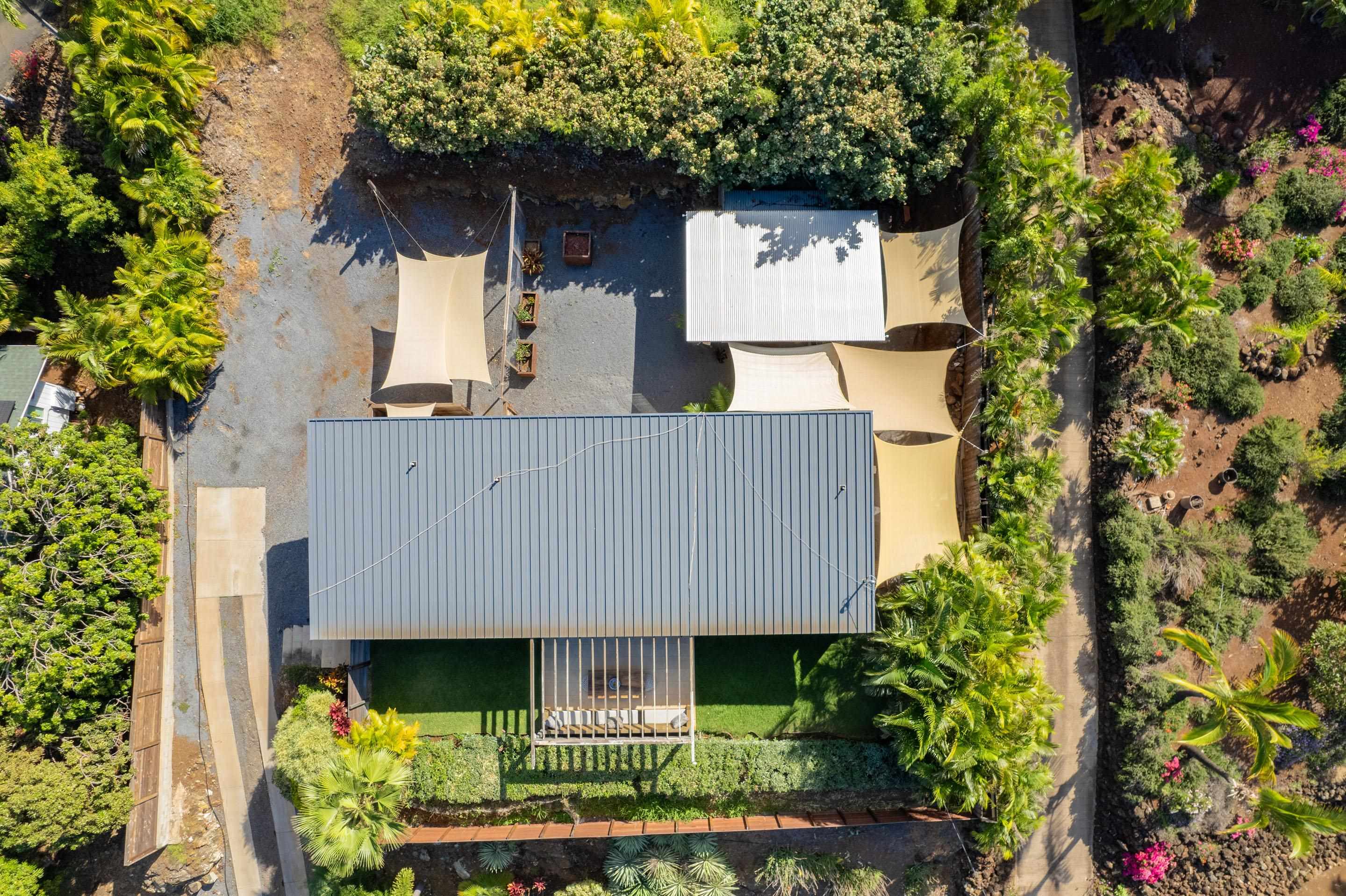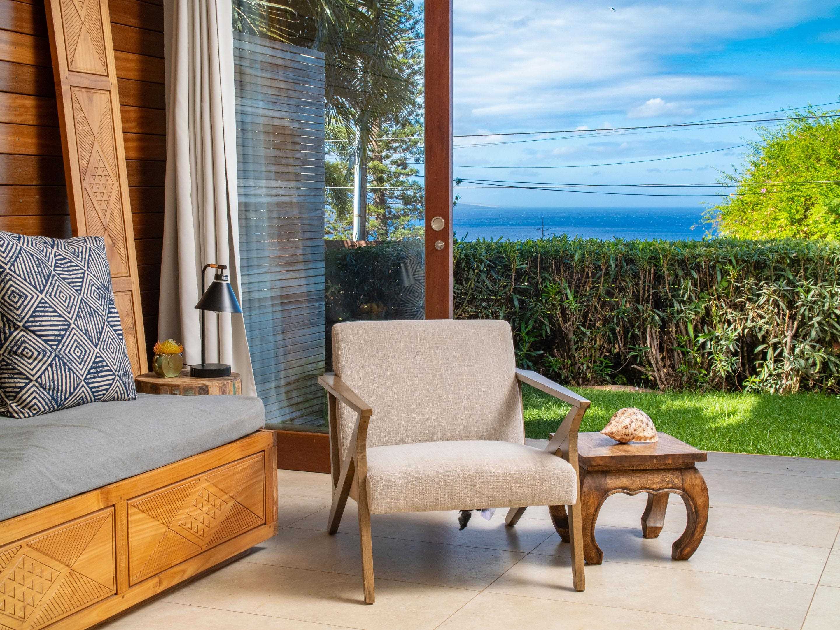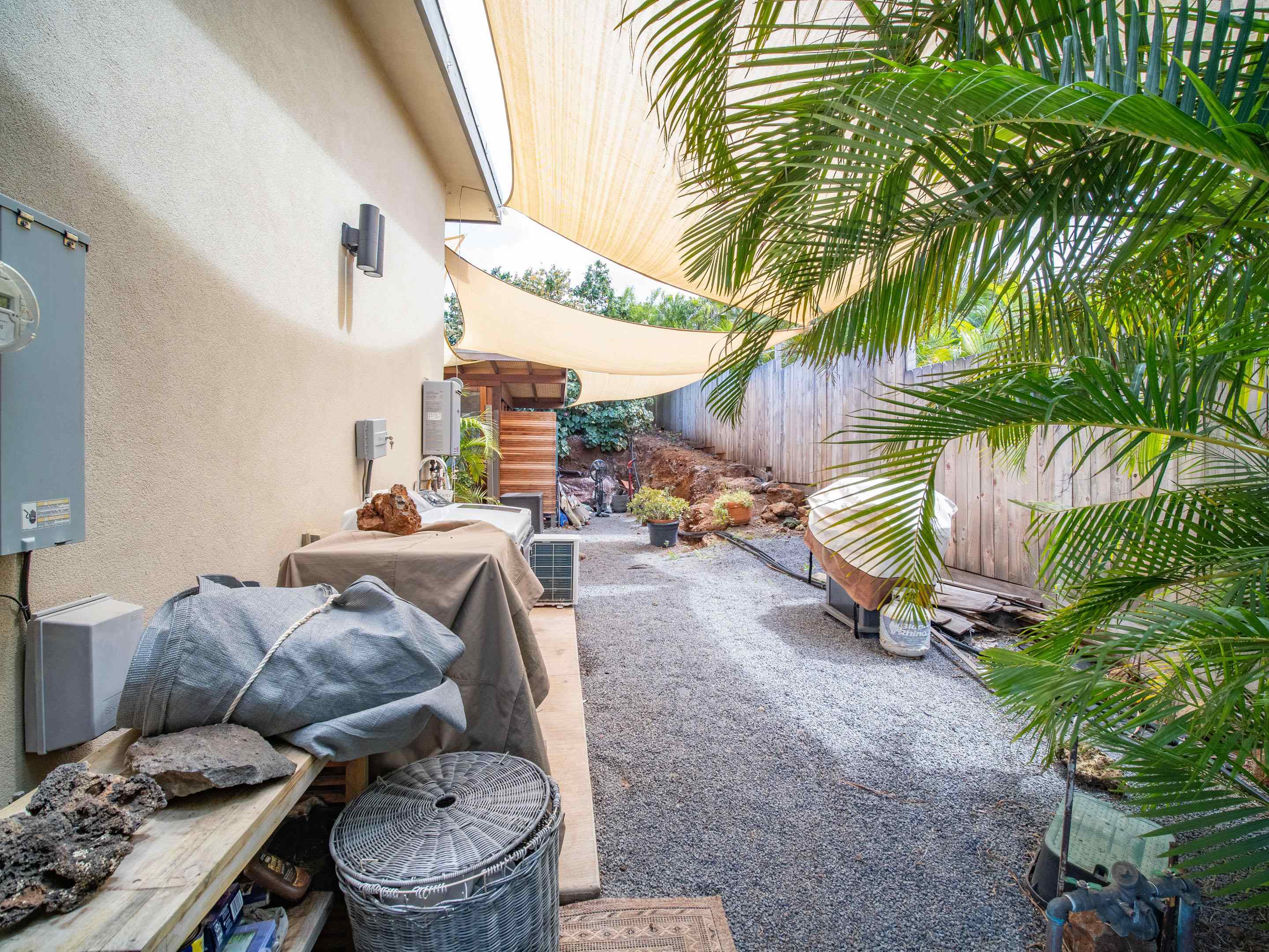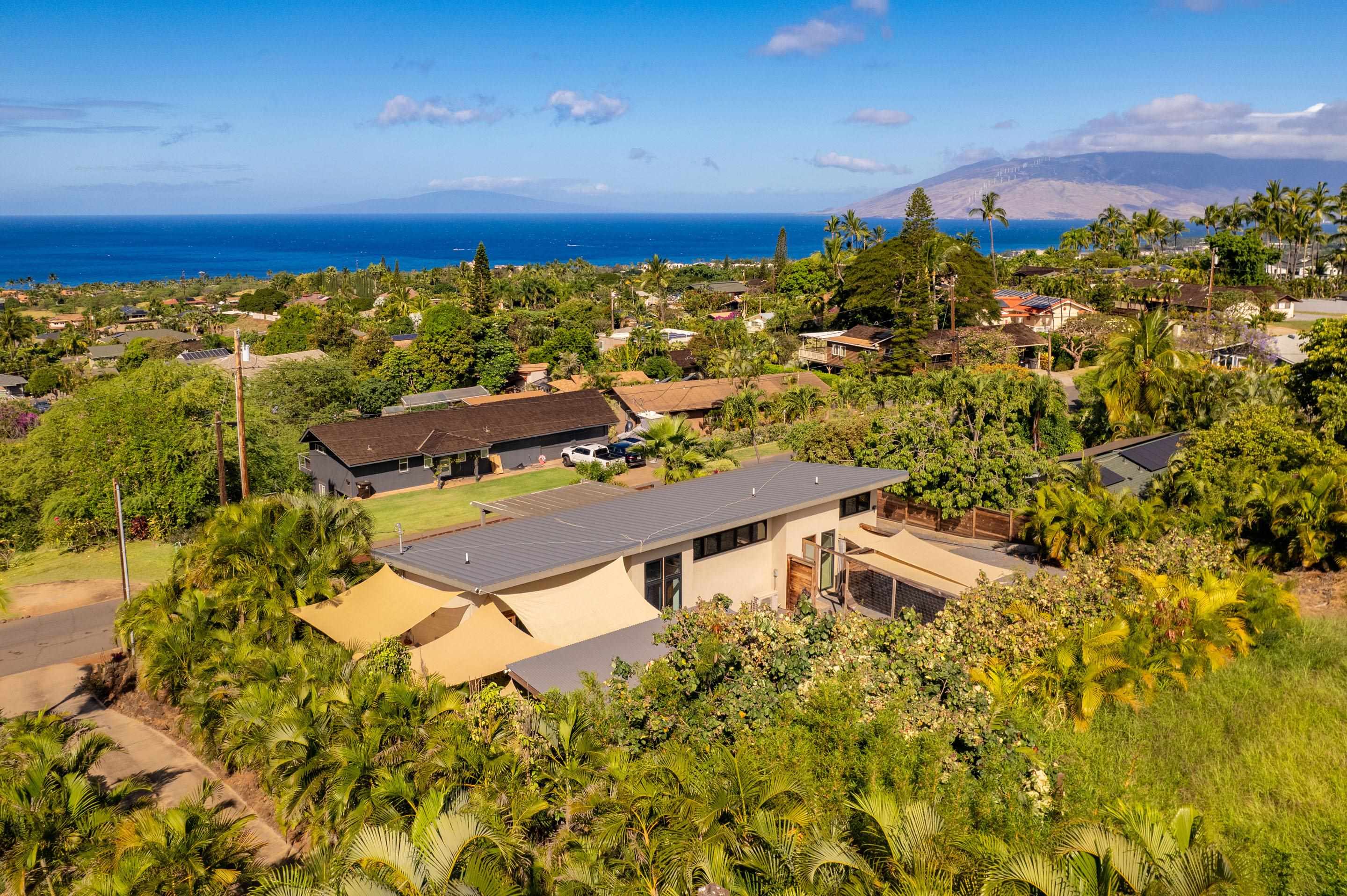Discover the essence of refined island living in this beautifully designed 2-bedroom, 1-bathroom home with a separate studio, nestled in the highly sought-after Maui Meadows neighborhood. Thoughtfully crafted with high-end natural materials, this breezy tropical-modern Bali-inspired retreat seamlessly blends indoor and outdoor living, where panoramic ocean views and warm island breezes create an atmosphere of pure tranquility. Tucked away in one of South Maui’s most coveted enclaves, this home offers the perfect balance of privacy, space, and convenience—just minutes from world-class beaches, Wailea’s premier dining and shopping, and championship golf courses. Inside, soaring 12-foot ceilings, expansive Anderson windows, and exquisite custom Bali doors invite an abundance of natural light, blurring the lines between indoor comfort and the island’s natural beauty. The heart of the home is the spacious living area, where magnificent custom sliding doors open to a covered lanai—an idyllic setting for al fresco dining, relaxation, and breathtaking Maui sunsets. The kitchen is a tropical-modern masterpiece, featuring rich teak cabinetry, sleek stainless steel countertops, premium appliances, and a gas stove—perfect for culinary enthusiasts. The primary suite offers a serene retreat with a walk-in closet and a spa-inspired ensuite adorned with Italian marble and custom Bali cabinetry. The separate studio provides a versatile space for guests, a home office, or a creative sanctuary. Lush, irrigated landscaping surrounds the home, enhancing the private outdoor shower and serene garden pathways. Additional highlights include a five-bedroom septic system, a private guest-ready studio, and a quiet three-zone split A/C system, ensuring year-round comfort. This is a rare opportunity to own a truly unique island sanctuary in Maui Meadows, where space, privacy, and tropical elegance come together in perfect harmony. This is the Ohana portion of a Residential CPR.