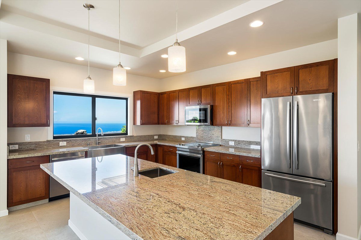Hualalai Vistas newest home offering 3 Br 2.5 Ba, expansive view on 1 acre private lot. Landscaped and sprinklers, all appiances, large garage,tile flooring in most areas, carpet in Bedrooms.