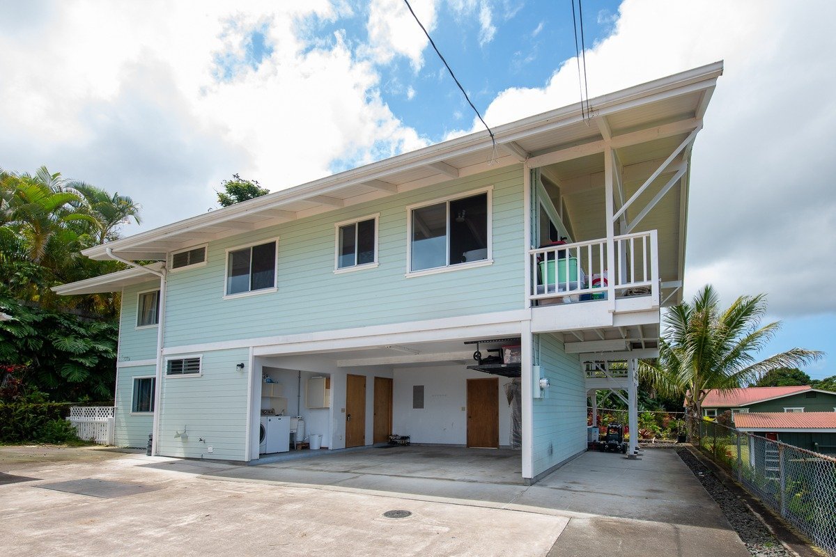 Exceptional Value! Two permitted homes on one lot. FRONT HOUSE: 2/2 with a cute front yard, ocean view, enclosed lanai and large living area. OHANA: 2/2; 1/1 upstairs has a stunning ocean view open living area, beautiful updated kitchen with concrete tops and large island.1/1 Lower living area consist of a separate guest room with full bathroom, two car carport, laundry and cute private back yard. Each home has its own electric meter. Property has already been converted to septic and has ample parking. Ideal location above the airport, cooler elevation and close to Kona town. Tax records do not match actual bedroom count. The information herein may contain inaccuracies and is provided without warranty or guaranty of any kind. Agents and Buyers must independently verify any info they deem material or important to their purchase or any offered price there under.