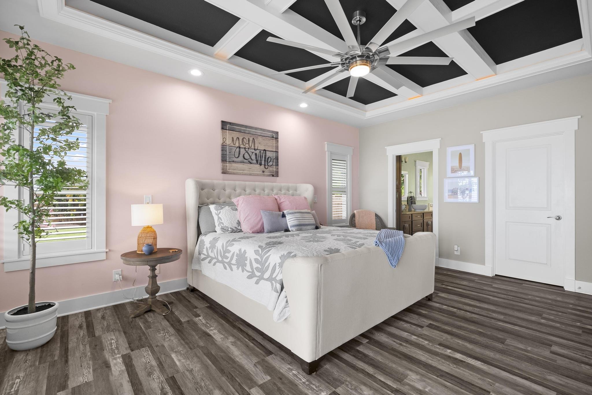The kitchen features stunning cabinetry, granite countertops, stainless steel appliances, blending beauty with functionality. Throughout the home, you’ll find mahogany ceiling accents, new luxury vinyl plank flooring, and high 9’ ceilings with coffered details. The primary suite enjoys ocean views, a walk-in closet, double vanity, soaking tub, and an oversized walk-in shower.