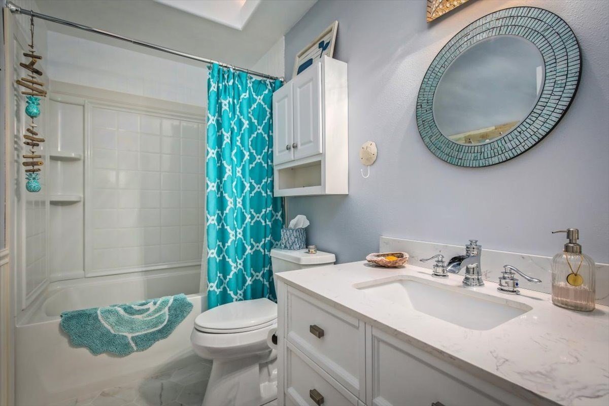 As soon as you step in the door you are greeted by a warm color pallet, vaulted ceilings, hardwood floors and a fun, statement fireplace. The spacious and open floor plan with multiple seating areas makes the home easy to move through and easy to entertain in. Wake up to coastline and ocean views in the large master bedroom which also includes lots of bonuses such as a walk through office with skylight, walk in closet, master bath with dual vanities and large sliding doors with access to the lanai. Both guest bedrooms and the guest bath are on the opposite side of the master providing privacy for all of the bedrooms.