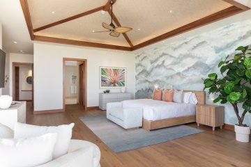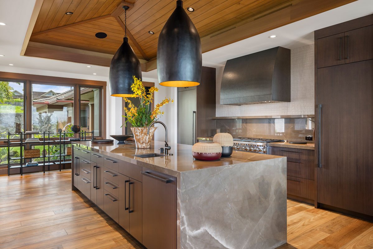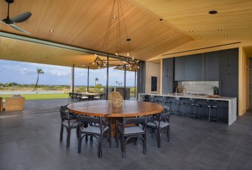 Set on 1.127 acres along the 15th tee of the Rees Jones-designed golf course, the home offers panoramic ocean vistas, including views of the iconic white sand beach, near the popular surf area called Pine Trees. A seamless fusion of classic Hawaiian architecture and elevated modern design, Hale Kai Mana was masterfully designed and built by Aina Ola in collaboration with award-winning interior designer, Amy Vail and curated interior furnishings and decor by award-winning Nicole Hollis.