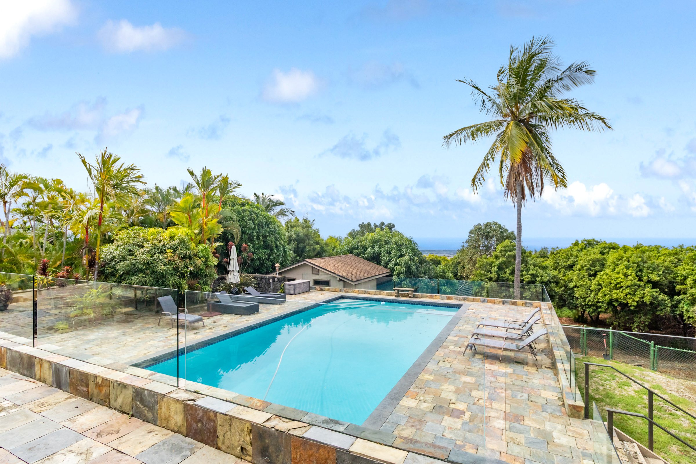 Spacious, private, and perfectly positioned above the Kona coastline, this gated one-acre property offers the ideal blend of island tranquility and everyday convenience. With coastline views, a large family-friendly layout, and multiple private spaces, this home is designed for flexibility, comfort, and long-term enjoyment.The expansive kitchen serves as the heart of the home, featuring abundant counter space, generous storage, and a walk-in pantry—ideal for busy households, entertaining, or extended family living. The primary suite is a true retreat, complete with a window seat overlooking the view and an ensuite bath with a walk-in shower highlighted by glass block, allowing natural light while preserving privacy.Multiple private rooms throughout the home provide versatile living options, including a separate office with its own entrance, perfect for remote work or professional use. There is an additional private bedroom with dual entrances. The layout allows family members, guests, or multi-generational households to enjoy both shared spaces and personal privacy.Outside, enjoy the large, deep swimming pool set within a peaceful, open one-acre setting. The gated entry adds privacy and security, while the elevated location captures cooling breezes and beautiful views of the coastline.Located just minutes from Kailua-Kona, beaches, shopping, and the airport, this subdivision is truly a hidden gem. No HOA fees and an acre to enjoy your pets and projects. This home offers peaceful island living without sacrificing accessibility. A rare opportunity to own a spacious, private property with views, versatility, and lasting Kona appeal.