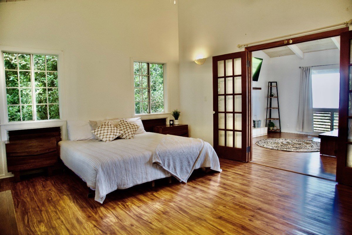 Embrace Big Island living in this charming, farmhouse style, single level home surrounded by a mature food forest. This 3 bedroom, 2 bath home is just minutes away from the quaint town of Holualoa. Located on the gentle slopes of Hualalai in cool elevation up Keopu Mauka Rd., one of the most desired land on the West Side for its rich soil. Situated on 2.28 acres with a fenced pasture lining the driveway for the resident goat and native trees. Open concept living - kitchen, living and dining areas with high exposed beam ceilings. A pair of French doors extend the space onto the front lanai for both the living and dining areas! A wood burning fireplace makes this home perfect for indoor/outdoor living while enjoying the glow of Kona sunsets from anywhere in the home. To the right of the living space, through glass French doors, you will find the primary suite with attached bath featuring standing shower, spa tub and dual sinks. To the left of the dining space you’ll find a full bath and two bedrooms. Through kitchen is a second entry way into the home featuring a tile lanai (patio) with a hot tub connecting the home with a 2 car garage/workshop. Take a stroll through the yard to pick your seasonal fruits and vegetables from the gifting trees/plants… banana, guava, avocado, lime, orange, pineapple, sweet potato, lettuce, and many more! Features: º Partially furnished º Wood Burning Fireplace º Large fenced back yard + fruit trees º Fenced pasture area on bottom half of property º Mature landscaping - Koa, fruit trees, rainbow eucalyptus º Hot tub with Ocean view. º Greenhouse º Tankless propane water heater º Butcher Block Countertop Island º Misc staging decor is not includedCPR lot has water meter, splits water usage 50/50 With a little TLC this home can be the modern farmhouse of your dreams. 360 Tour: https://kuula.co/share/collection/79qT8?logo=1&info=0&logosize=200&fs=1&vr=1&sd=1&initload=0&thumbs=1