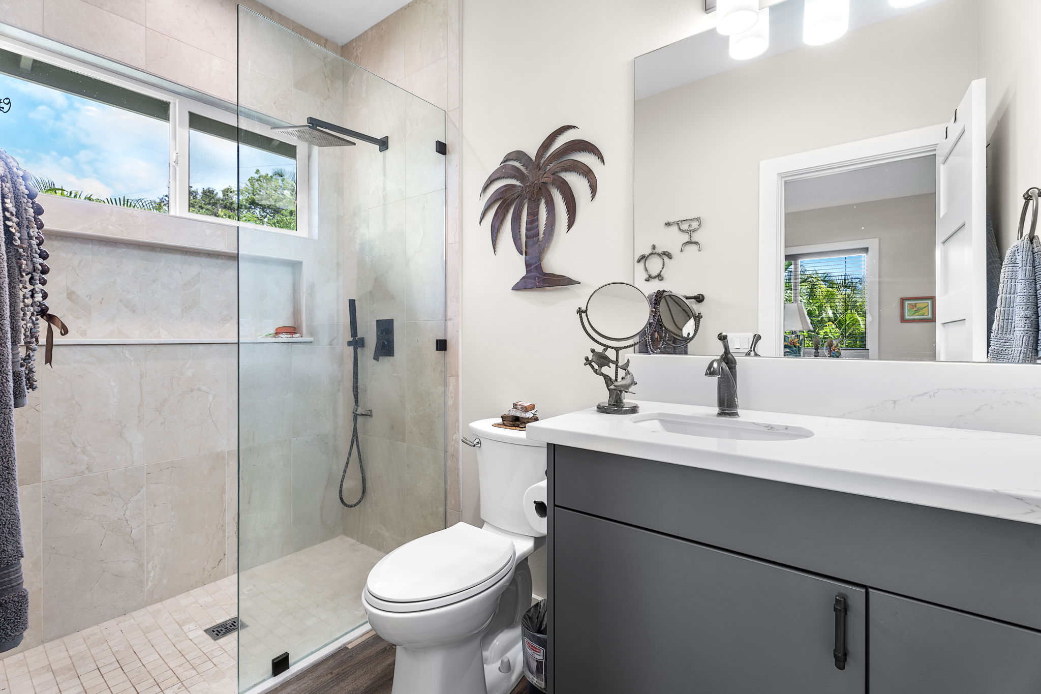 Welcome to this meticulously crafted duplex- close to shopping, dining and beaches!This well planned out duplex features TWO units each with two generously sized bedrooms, offering abundant natural light and ample closet space. With two tastefully designed bathrooms, including one en-suite, you'll find a blend of luxury and functionality..The open-concept living area seamlessly flows into the stylish, modern kitchen. You'll find sleek cabinetry, premium quartzite countertops and a large central island.The thoughtful design extends to the outdoor spaces as well. Step through the sliding doors and you will be greeted by your own private lanai and yard. The outdoor space provides space for gardening or a peaceful retreat.In addition to the stylish interior each unit has a one- car garage, offering both convenience and additional storage options. Each unit also has a Tesla Powerwall battery, 13 leased solar panels and an inverter, run your split AC system with virtually no electric bill!Nestled in the heart of Kailua-Kona, this property provides the perfect balance of privacy and accessibility to local amenities. This is a lucrative income property for rentals- either short or long term. Live in one unit and rent the other or rent both!