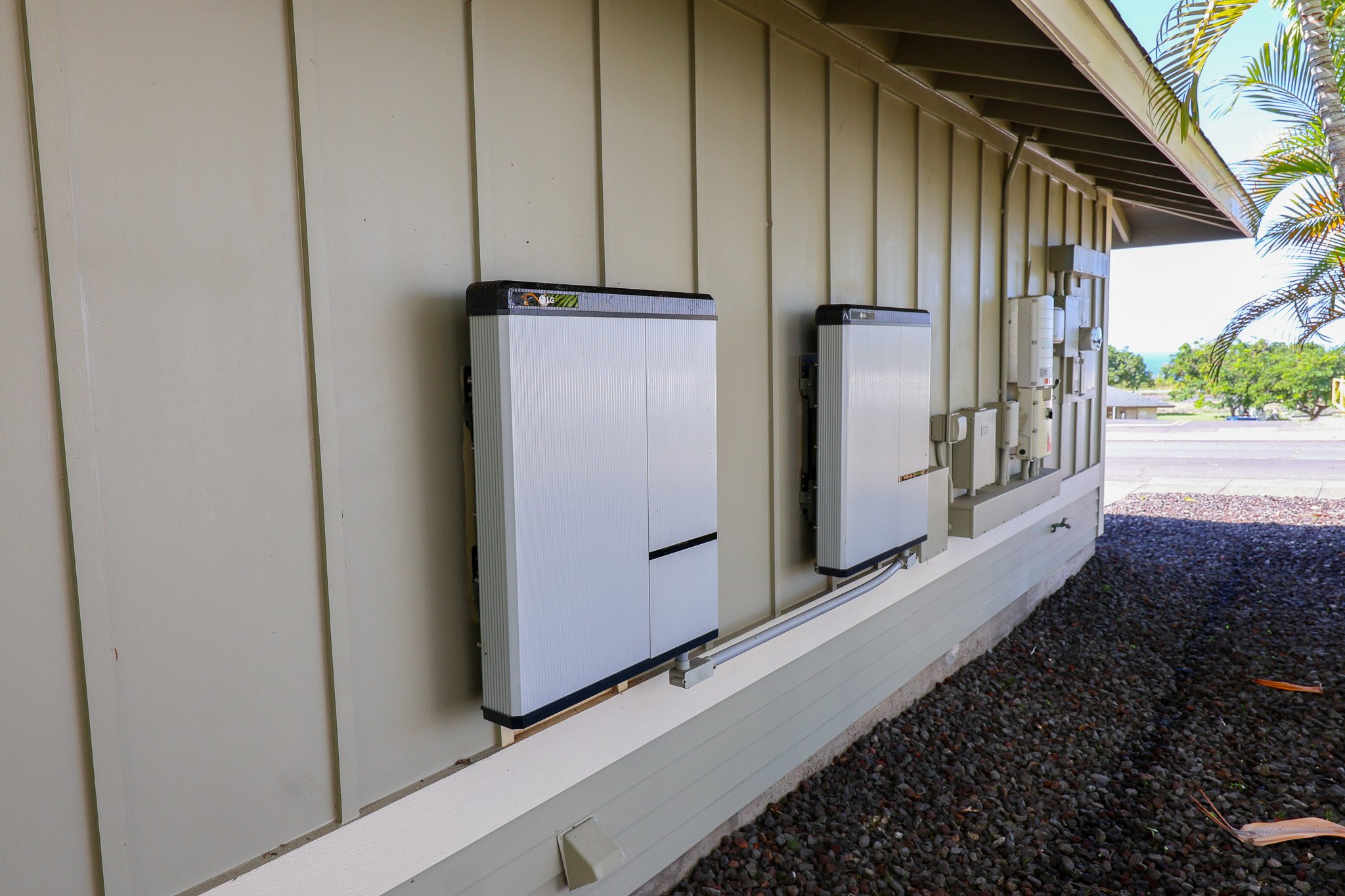 Welcome to this well-maintained single-story home located in desirable Pualani Estates. This charming residence features inviting landscaping and vinyl fencing ensuring privacy.As you enter, you'll appreciate the ease of maintenance provided by the ceramic tile and laminate flooring throughout the home. Each bedroom and living area is equipped with split AC units for optimal comfort year-round. The property boasts an eco-friendly photo-voltaic system, featuring 18 panels, currently leased for $157 per month, which significantly reduces your electric bill to approximately $30 monthly.The spacious kitchen features an open layout and includes all necessary appliances. Corian countertops and a convenient island that adds extra counter space. The primary bedroom offers a generous area with updated laminate flooring, complemented by a primary bathroom featuring a double vanity and a recently remodeled handicap-accessible walk-in tile shower.Both guest rooms are equipped with split AC units and laminate flooring, making this home a comfortable and practical choice for family and guests alike.In the back of the home, you'll discover a spacious concrete area adorned with a charming wooden trellis, perfect for entertaining guests. This inviting outdoor space is surrounded by a beautifully designed rock yard, featuring concrete stepping stones that lead through the well-maintained grounds.The area is highlighted by an appealing rock wall and mature landscaping, creating a serene and picturesque setting. The backyard oasis provides an excellent backdrop for gatherings and outdoor activities, making it an ideal place to entertain family and friends.This charming home is ideally situated at the front of the subdivision, just across the community park. The covered front porch offers a perfect vantage point for taking in the neighborhood's activities, making it an ideal spot for both relaxation and recreation.