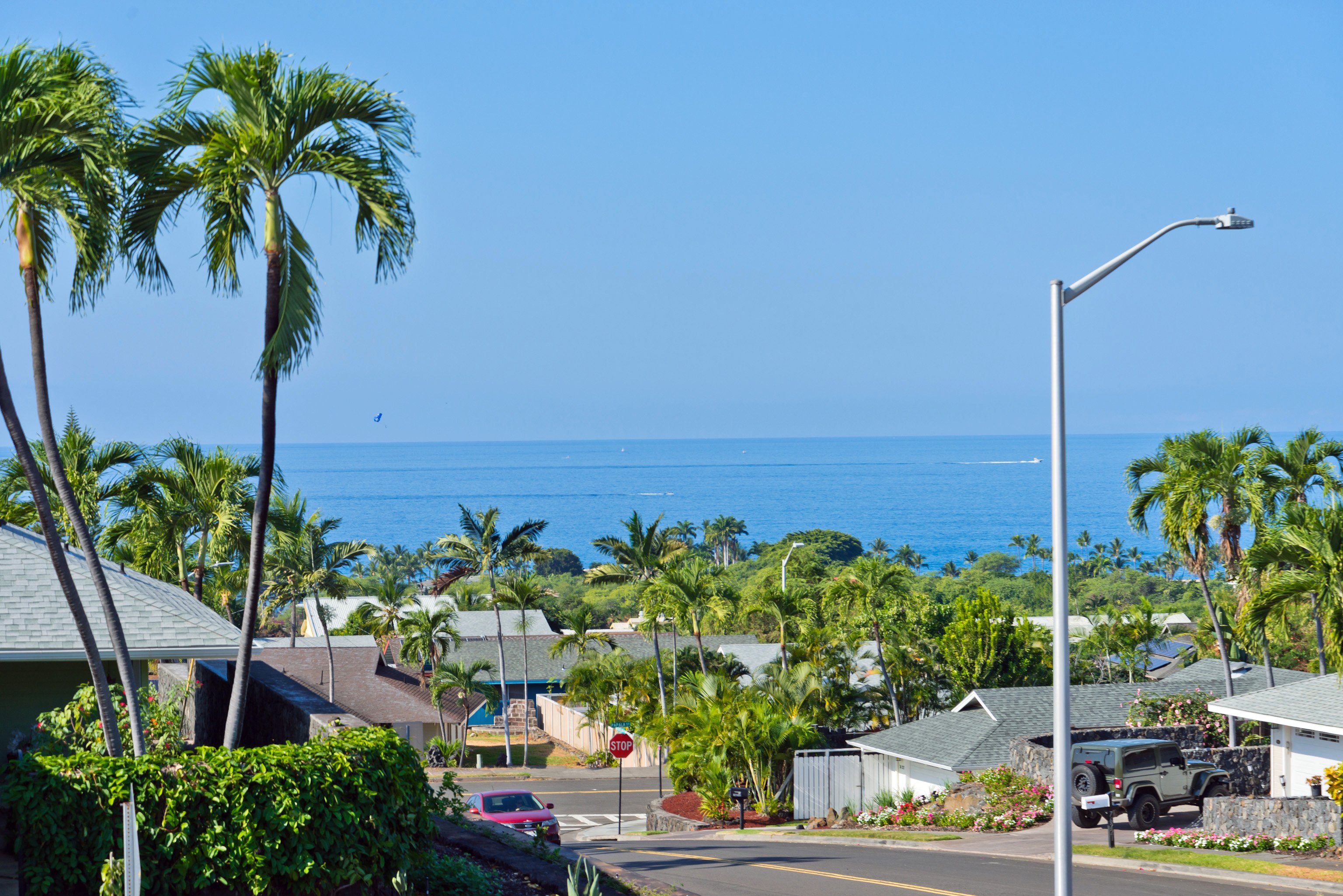 Welcome to your slice of paradise in the highly sought-after Kuakini Makai subdivision in Kailua-Kona! This charming 3-bedroom, 2-bath home offers the perfect blend of island living and comfort. With a fresh coat of interior paint, abundant natural light, vaulted ceilings, and a spacious living area this home is perfect for relaxing or entertaining. The kitchen has ample cabinet space for all your culinary needs.The primary bedroom is a tranquil retreat with an en-suite bathroom and generous closet space. Two additional bedrooms provide versatility, whether for family, guests, or a home office.Enjoy breathtaking ocean and sunset views from your lanai, ideal for outdoor dining or simply soaking in the beauty of the Big Island. The landscaped yard features tropical plants and room for gardening or recreation.Located just minutes from downtown Kailua-Kona, this home offers convenient access to beaches, shopping, dining, and schools while maintaining a peaceful neighborhood vibe.HOA fee is $179 for 2025 and paid by the end of February.No showings 1/21/20205 - 1/22/2025: Home is being fumigated.