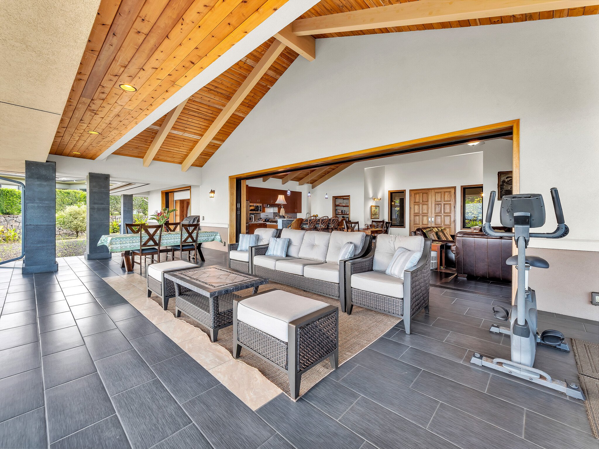 Welcome to this beautifully crafted single-level custom home in the exclusive 6-home subdivision of Lani Kai Estates. Enjoy sweeping panoramic ocean views stretching from Keauhou all the way past Honokōhau Harbor. This 3 bedroom, 2 bath residence offers thoughtful design and quality finishes throughout, including two-tone porcelain tile flooring, a spacious 3 car garage, and a seamless indoor-outdoor living flow. The kitchen is a chef’s dream, featuring quartz countertops, custom cabinetry, and a stylish glass tile backsplash. Benefit from energy savings and peace of mind with a fully owned solar system paired with a Tesla Powerwall.
