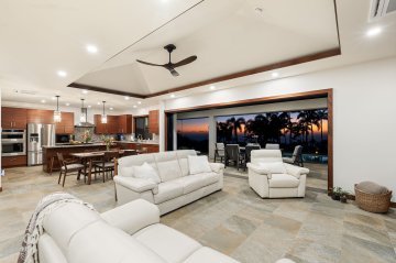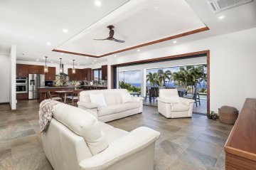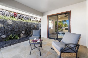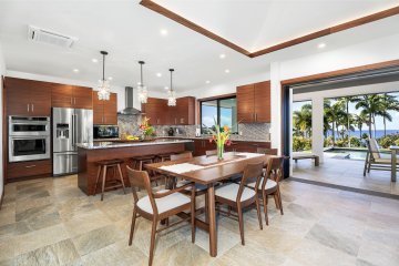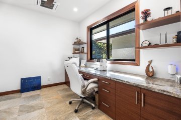 Come home to resort-quality comfort, style, and thoughtful design in this private Kailua-Kona retreat. Set on just under an acre, this 4-bedroom, 3-bath residence offers over 2,700 sqft of living space designed for seamless indoor-outdoor living. The heart of the home is a spacious kitchen featuring a central island, bar sink, and generous prep space, perfect for daily living or entertaining.The primary suite is a standout, featuring a spa-inspired bath with travertine floors, Carrara marble shower, walnut vanity topped in Elegant Grey Quartzite, and a stunning coral stone accent wall that adds natural texture and warmth. Air conditioning and a solar water heater provide year-round efficiency and comfort. A covered lanai opens to a landscaped privacy garden, offering a tranquil outdoor escape.Additional highlights include a laundry room with sink, broom closet, and a two-car garage. Located in a desirable neighborhood with a balance of space, convenience, and refined finishes, this property is ideal for those seeking a well rounded lifestyle.