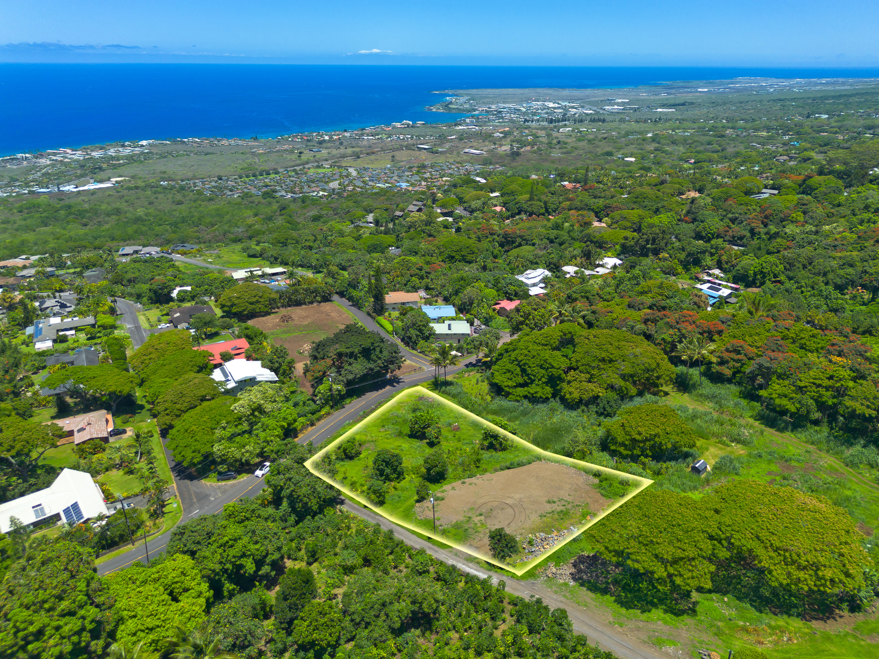 Country Living with Ocean View. This spacious 1 acre lot has it all at a comfortable elevation of 1,000 ft +/-. This raw land is located on the slopes of Hualalai and is just minutes from Holualoa Village up the hill or head down the hill to Kailua Kona town. This property is positioned in the Kona Coffee Belt which some would say has the best natural growing conditions for coffee in the world. The property has been graded with a large pad ready to build on maximizing ocean views and water installed to the property. There is full grown producing coffee and other producing fruit trees to include Avocado, Ulu Mango and Papaya. Come and enjoy peaceful country living so close to town.