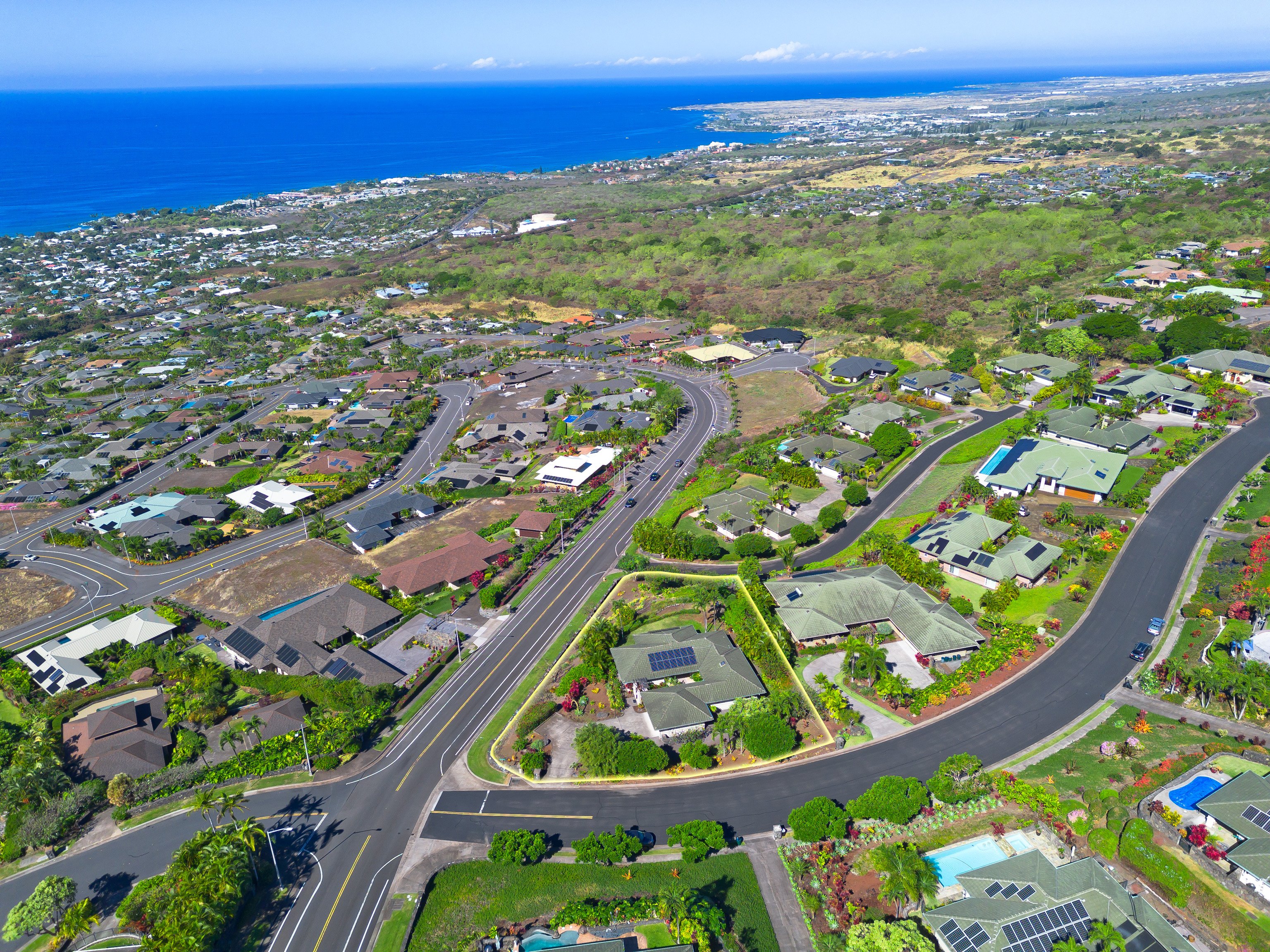 This home overlooks dramatic, mesmerizing and unobstructed coastline views. Enviably located in prestigious Iolani subdivision at a median elevation of approximately 750'. The amazing coastline view as seen from this impressive property extends from Lyman's surf break in the south, to Kailua-Kona and its neighboring and majestic bay in the north.Access to the home is via a gated entry into a welcoming courtyard fringed with colorful manicured garden beds. From this peaceful setting, a large pocket door opens to a spacious great room which in turn has a large pocket door which opens to a covered ocean-facing lanai that extends the full length of the home. The magical effect of the pocket doors is the creation of a wonderful and stimulating indoor-outdoor lifestyle.Special features of the house include:- * A kitchen with a pass through buffet bar, island together with slider access to the lanai. * Primary bedroom and bathroom discretely located on the opposite side to the 2nd & 3rd bedrooms. * 3rd bedroom set up as a home theater. * An office alcove with garden views. * A laundry room. * Split A/C systems serving the primary and 3rd bedroom. * A leased roof mounted PV system. * An attached 2 car garage with work counters and wall cabinets. * A near new hot tub and grill on the lanai. * HOA fees are $259.00/ month and include Internet and cable.Landscape:- * Privacy hedges and trees on the upper northern and eastern boundaries. * Established pathways to the lower end of the property. * Producing mango, lemon and orange trees. * Plenty of suitable area for the establishment of raised garden beds. * A recently upgraded irrigation system.Not previously mentioned is the convenience of this location to Kailua-Kona town, Keauhou and the Ellison Onizuka International Airport.Video: https://vimeo.com/1050416931/ca83e898c0?share=copy