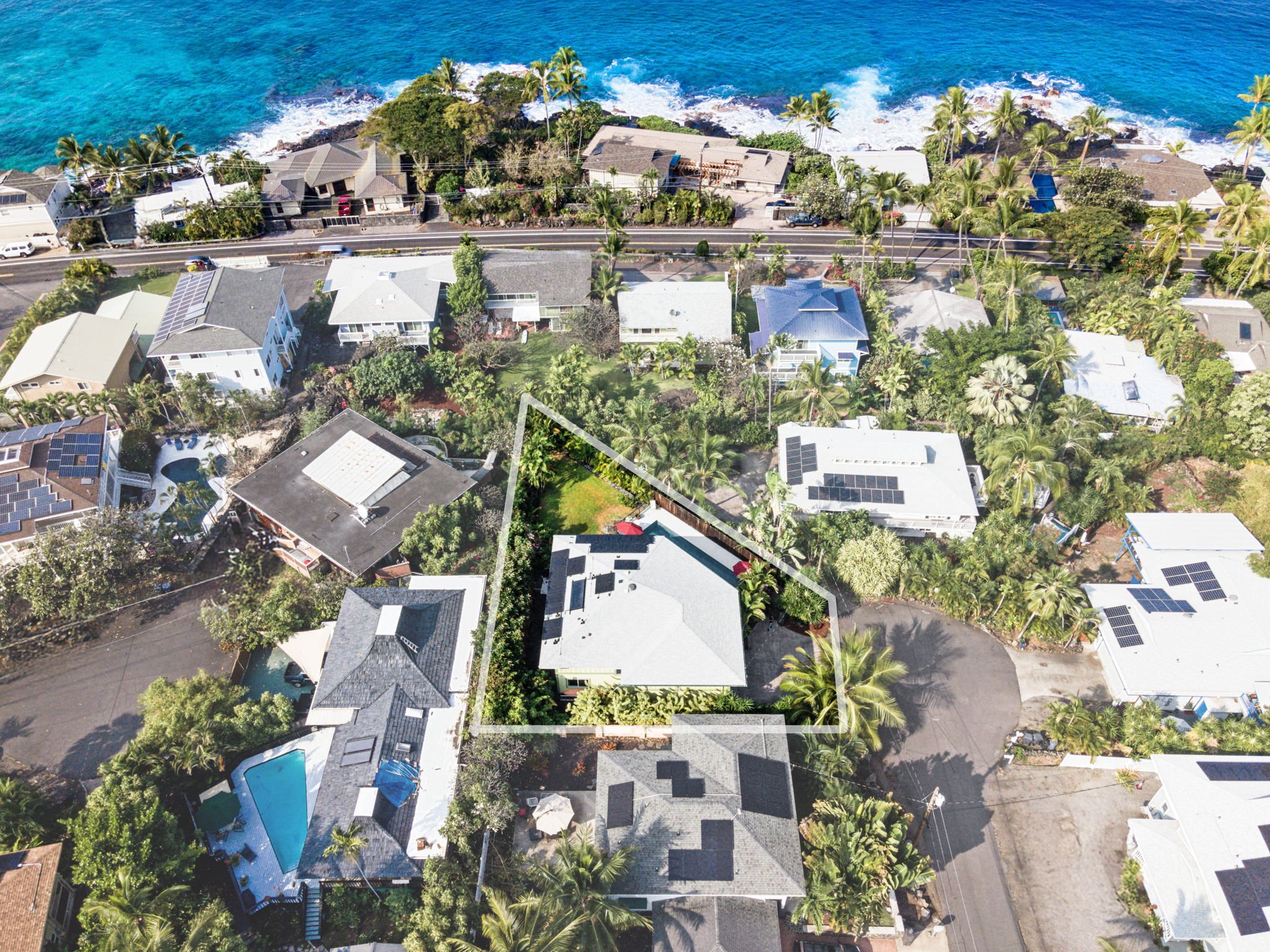 White Sands Beach Estates is a highly desirable and popular neighborhood offering a quintessential island lifestyle, the properties on the community’s west side as close as 120 yards from the Pacific Ocean. Strategically located between the scenic Alii Drive and the convenient Highway 11, these 82 homes provide an ideal blend of tranquility and accessibility.