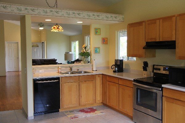 This is the home you've been waiting for! An exceptionally well maintained 3 bedroom 2 bath single level home in a wonderful conveniently located neighborhood, just minutes to the beach, shopping, and entertainment. This home offers great curb appeal, immaculate tropical landscaping, including mature banana, papaya and lime trees. As well as a great outdoor yard space and lanai to enjoy all year round. Featuring an inviting open floor plan with high vaulted ceilings, and newly installed split zoned air conditioning for your comfort. There is also the bonus of a fully owned photovoltaic system, and solar hot water. A few additional perks are rock wall borders, a roomy attached garage, beautiful wood-look laminate and tile flooring, newer appliances and a walk in closet in the master bedroom. With everything you need, this is a fantastic value, and move in ready. Furnishings are negotiable as well, schedule a showing today!