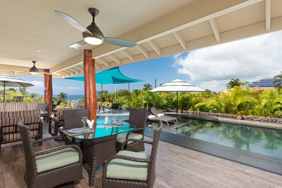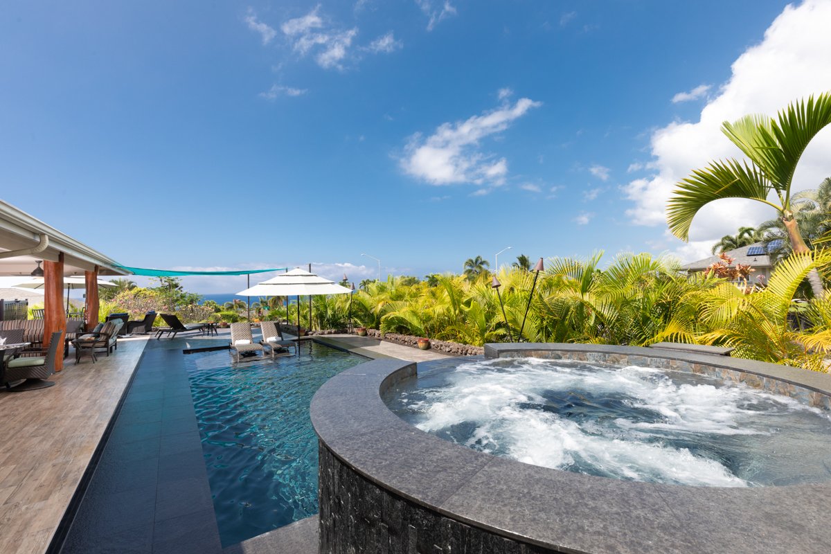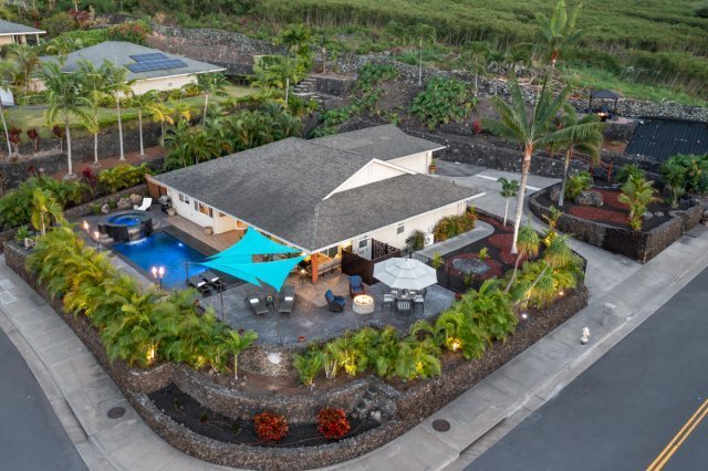 If you're looking for a MINI RESORT in Kailua-Kona, close to the beaches -- and NO HOA dues -- you just found it! This amazing, single-level home was built in 2007 and has been impeccably maintained and improved upon. It sits on a corner lot and backs up to a large, vacant parcel which gives it incredible privacy!Some of the more notable features of this highly desirable home include: * BRAND NEW heated in-ground swimming pool AND spa with a soothing waterfall feature * The swimming pool has a fabulous Baja shelf -- perfect for your chaise lounge chairs * Massive tiled, covered lanai -- perfect for entertaining * Ocean views * Fire pits * Observation deck with fabulous views -- perfect for whale watching and stargazing * Soaring cathedral ceilings * Incredible Ohia posts * Central air conditioning AND zoned air conditioning in the primary bedroom suite * New ceiling fans * Elegant double-door entry to the primary bedroom suite * Two closets in the primary suite -- one of which has a fabulous closet system * Walk-in shower in the primary bath and a shower-tub combination in the guest bath * The large laundry room features a convenient built-in storage area * Whirlpool front-loading washer and dryer * Stainless steel appliances include a refrigerator, dishwasher, glass-top electric stove and microwave hood * Luxury vinyl plank flooring in the main areas of the home; tile in the kitchen and baths * Beautifully landscaped w/lipstick palm trees, mango and more while being very, very low maintenance * Irrigation system * The stately lava rock walls and exterior uplighting are stunning at night * Beautiful gated driveway * Outdoor shower at pool * Three-car garage w/remote entry * New water heater w/timer [Oct. of 2024] * Offered mostly furnishedVirtual tours: https://leecaptures.wistia.com/medias/u2dceppebv https://my.matterport.com/show/?m=DimbXnHdQah&mls=1&ts=1&hl=0