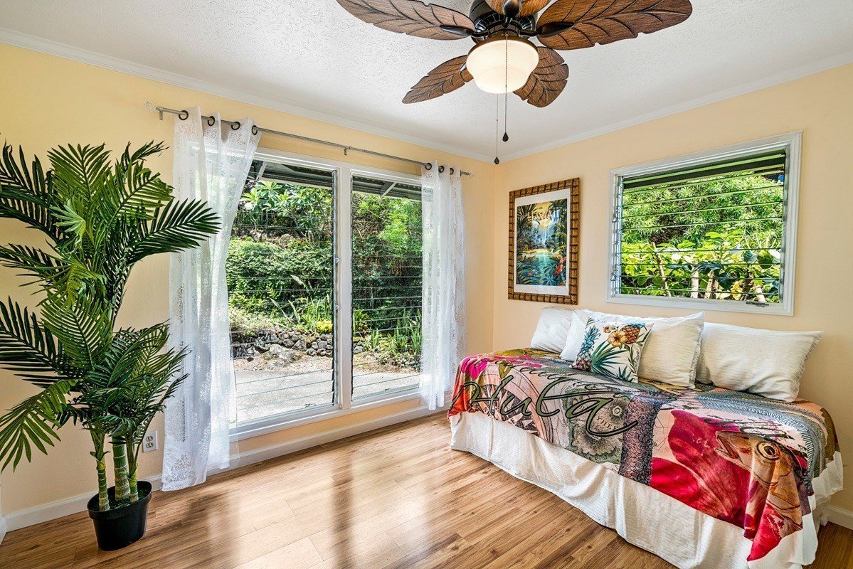 TWO FOR ONE! Two separate living areas: Live in one and rent the other OR rent both!MAIN HOUSE: 2 bedrooms, 1 bath, full kitchenSEPARATE STUDIO: Large, permitted studio with wet bar, full bath, lanai and separate entranceSome of the more notable features of this beautiful property include the following: * Ocean views, horizon views, sunset views, and Kailua Bay views * Powered by a fully-paid photovoltaic solar system with net metering ... and all computer-monitored * Gorgeous Pergo wood laminate flooring throughout — easy to maintain and looks great! * New reflective roof installed in 2007 * Solar hot water * Metal rain gutters installed in 2017 * Pull-out shelving in real wood kitchen cabinetry * Propane stove and washer/dryer replaced in 2015 * Large closets * Wonderful east-west ventilation * Crown molding * Pendant lighting at island in kitchen * Outstanding tropical landscaping includes a very fragrant puakenikeni tree, Tahitian gardenias, pink plumeria and royal poinciana * Edible landscaping includes mature delicious mangoes, creamy nutty-tasting avocados, Myer lemons and tangelosEasy to see — even on short notice!Superb, central location — close to beaches, golf, water sports, dining, shopping and more!