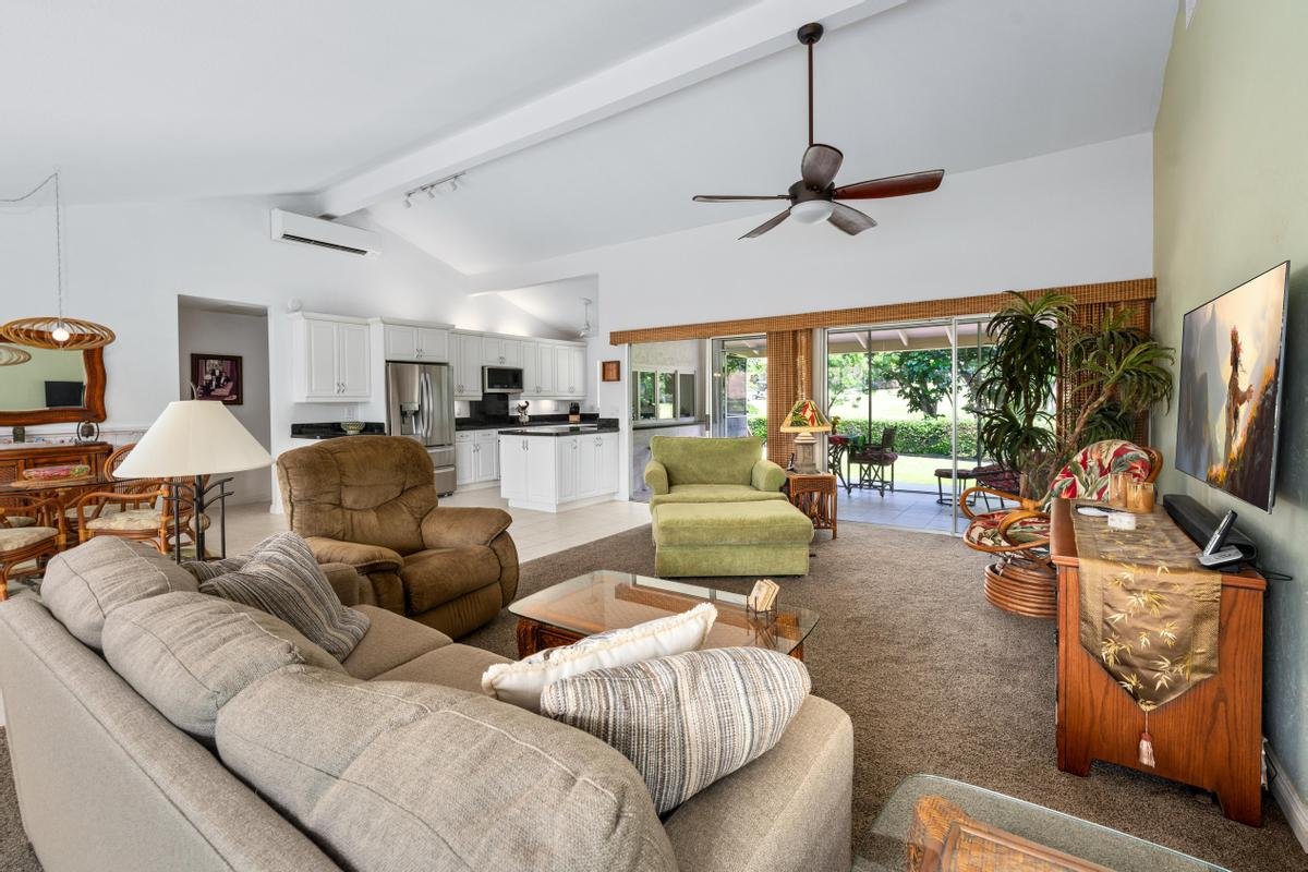 Rarely available Keauhou Resort home on the 11th hole of the Kona Country Club Ocean Golf Course and across the street from beautiful Heeia Bay in one of Kona's most desirable neighborhoods. One of the very few single family homes located in the Keauhou Resort Node Zoning, which allows this updated, well maintained three bedroom two bath home to be used as a SHORT TERM VACATION RENTAL!Features Include: ~ Efficient ductless split air conditioning in all rooms (New condenser just installed!). ~ Located across the street from stunning Heeia Bay and just a short walk to historic Keauhou Bay where you can jump on a snorkel cruise, charter a fishing boat or dive with manta rays. ~ Walk to the Keauhou Shopping Center with restaurants, movie cinema, Saturday farmers market, grocery store and a CVS pharmacy. ~ Single level home with open floor plan, cathedral ceilings and spacious covered and screened lanai with tropical golf course views. ~ Split floor plan with primary suite on one side and two bedrooms and bathroom on the other. ~ Glass sliding doors on both sides of the great room to let the tropical breezes flow through. ~ Underground utilities throughout the neighborhood. ~ Approximately 1/4 acre of mature tropical landscaping. ~ Resort node zoning overlay allows for vacation rentals. Perfect for a primary residence, second home or income producing investment.