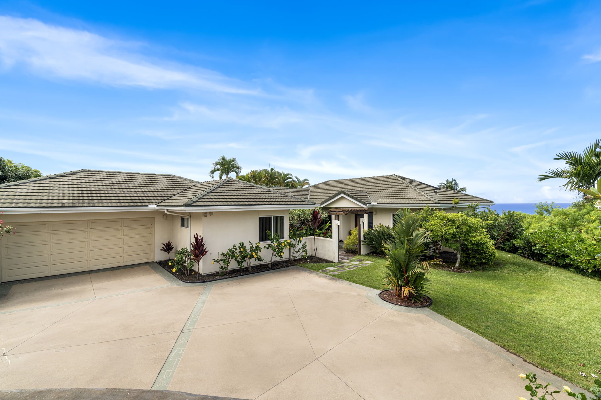 This luxury home greets you with sweeping ocean, coastline, and Keauhou Bay views. The living room, kitchen, and the primary bedroom open into the huge coved lanai, perfect for watching Kona's gorgeous sunsets and seasonal whale watching.
