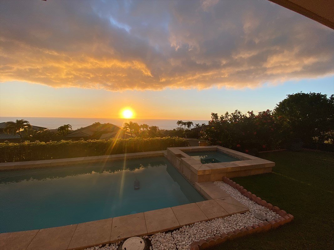 Located just minutes from Keauhou Bay this wonderfully designed home was based on the owner's love of the ease of Tuscany county living.. intimate and relaxing courtyard entry welcomes you with flower beds and intriguing designs. Beautiful pool and spa just outside the expansive covered lanai and outdoor dining area. The installed Net Meter Solar Electricity and Water Heating System is fully paid for and transfers all the current benefits to the new owner for low utility costs! Inside the home, you are greeted by amazing ocean views, and a great room with the Gourmet home chef's dream kitchen. Miles of counter tops, room for many hands to help, large prep area and built in floor to ceiling cabinetry. Professional sized gas range, granite topped island in the middle of the kitchen makes for a great place for conversations and meal preparation. A formal dining room sits off the side of the kitchen area and also opens to the wide covered lanai. The architecture of the home is detailed and hand crafted with private sitting areas. The outdoor entertaining area has a wet bar with ice maker for those sunset viewing gatherings. In addition to the 3 large bedrooms, there is a full size library/home office with a door for closing off the world when you are finished with business and ready to relax! Master suite is separate from the two other en suite bedrooms. Master bath has his and her vanity areas and double sinks. Soaking tub, walk in shower that opens to an outdoor rock wall private shower! The location of the home is outstanding.. just minutes from Keauhou Bay and Keauhou Shopping Center with Grocery, Restaurants, Cinema Theater, Doctor and Professional offices, plus a Coffee Café! Whether you golf, swim, fish, paddle or just watch for whales, this is a home you should check out to see if it might be THE one!!