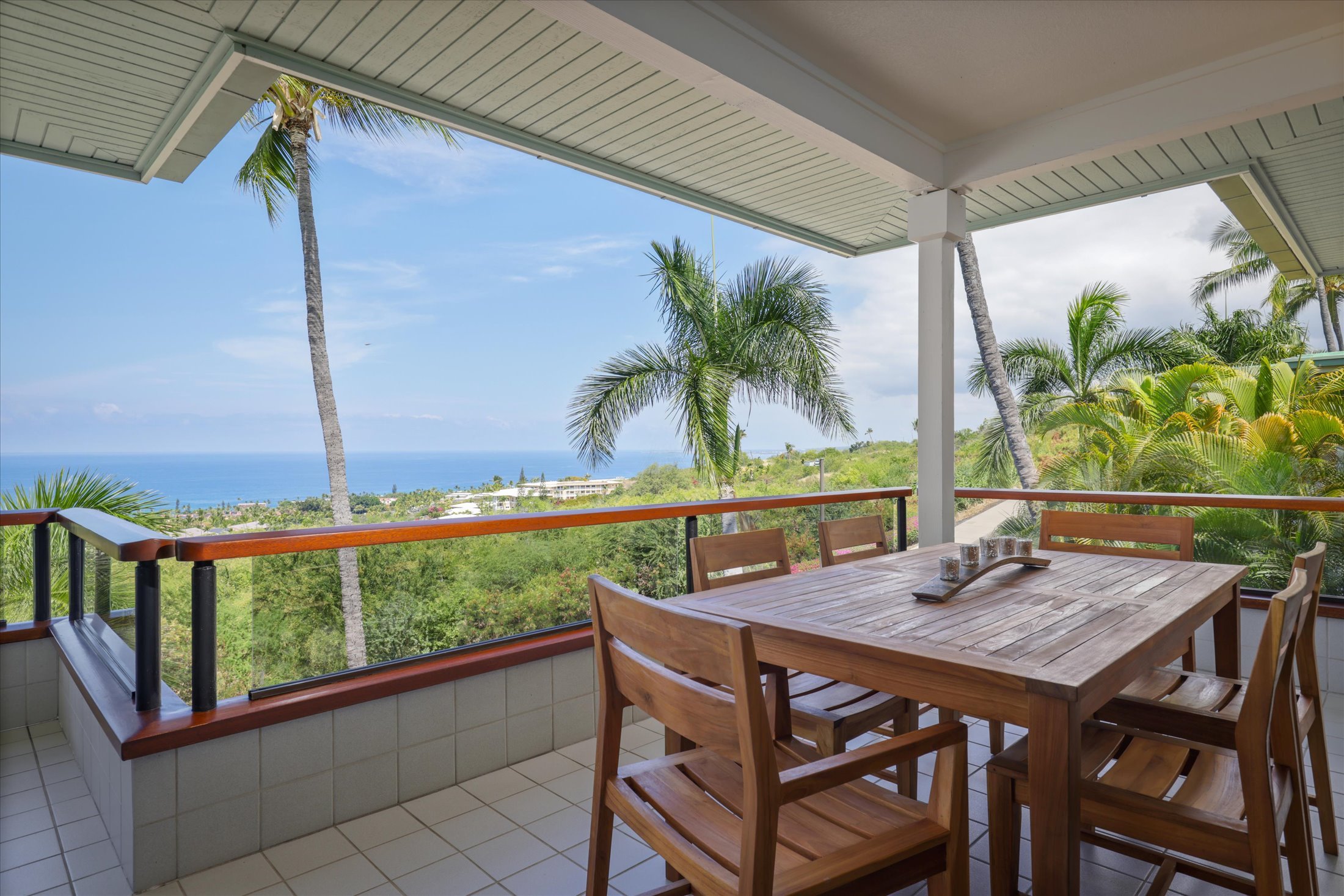 Hale Kehau is a luxurious condominium complex overlooking Historic Keauhou Bay. This stunning top-floor unit features three bedrooms and 2.5 baths. It is one of the few units in the complex with a private 1-car garage, making it a rare find. Units on this upper tier seldom become available, and the breathtaking views extend from Kailua Bay in the north to Keauhou Bay in the south!