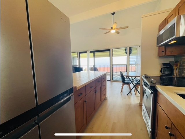 Enjoy coming Home when you move into this Turnkey Furnished Updated Top Floor End Unit at Kona Coffee Villas D336! Nicely Updated 2BD/2BA Unit *Gorgeous Modern-day Kitchen with Soft-Close Cabinets and Drawers *Elegant Baths with Solid-Surface Countertops. *Hardly-used, this unit is clean & ready for you to move into! *Front Entry and stairway recently painted by on-site manager *Maintenance Fees cover Water, Trash, and maintenance of the Pool, Hot Tub, BBQ-Picnic Pavilion, Parking, Landscape, and an On-site Manager