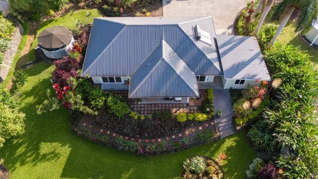 This custom 2017-built residence offers refined island living in the heart of Kealakekua. The home sits on nearly half an acre of beautifully landscaped tropical grounds. Enjoy ocean and pasture views, excellent privacy, and cool South Kona breezes year-round in a convenient, highly desirable neighborhood.The 3-bedroom, 2-bath layout features vaulted ceilings, abundant natural light, vinyl plank flooring throughout, and an open split floor plan. The design is ideal for everyday living and easy entertaining. The modern kitchen includes quartz countertops, custom cabinetry, and quality appliances, and flows seamlessly into the living and dining areas. The primary suite offers ocean views, a spa-like bath with dual vanities, a walk-in shower, and a generous walk-in closet.Outdoor living is enhanced by lush tropical landscaping and mature fruit trees, including citrus, banana, avocado, coffee, mountain apple, star fruit, and pineapple. Additional features include Milgard windows, solar hot water, water filtration, a spacious laundry and pantry room and a one-car garage.With no HOA or CC&Rs, this property offers flexibility in a prime South Kona location. It is close to schools, shopping, and medical services, and just minutes to Keauhou via the bypass.The information herein may contain inaccuracies and is provided without warranty or guaranty of any kind. Agents and Buyers must independently verify any info they deem material or important to their purchase or any offered price there under.