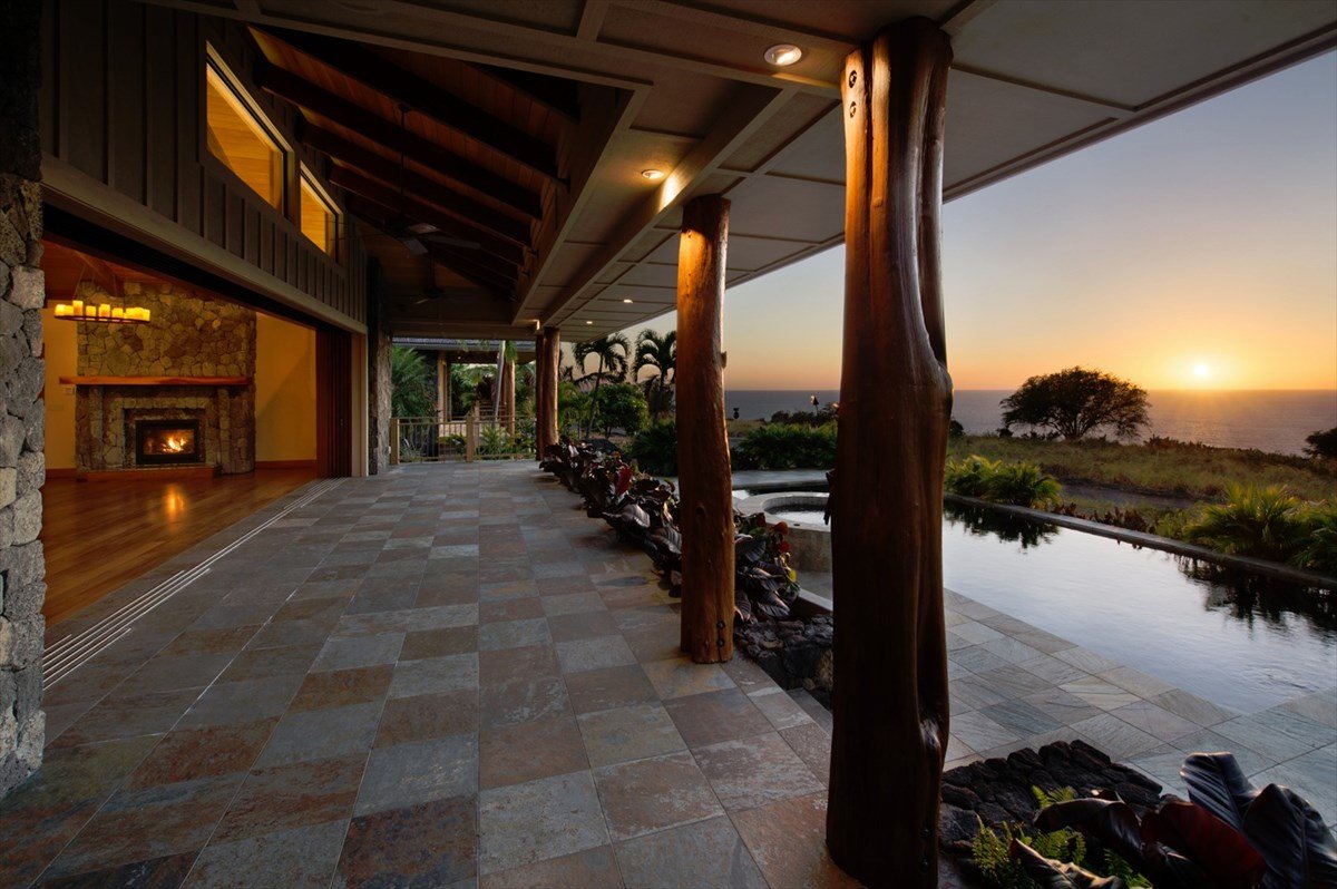 This classic Island Ranch style home in Hokuli'a, with large spaces for entertaining, features distinctly Hawaiian wood finishes from the adjacent ahupua'a (Kealakekua Heritage Ranch and Hokukano Ranch)including koa, ohi'a and mango. The great room is finished with ohi'a flooring and mahogany trim and the kitchen area includes koa cabinetry and granite countertops. The two guest bedrooms also feature ohi'a flooring, mango lined coffer-ed ceilings and private baths. The master bedroom and bath are finished with koa flooring. Including outside lanai's, entry porch, breezeways and garage the total building area covers 5,283 square feet. The residence is developed with 4 distinct pods - a great room with kitchen, laundry, media room and 1/2 bath, master bedroom with bath, two guest bedrooms, and garage. This beautiful home offers privacy as it is located on a 1.22 acre corner lot and brings all the wonderful amenities that have been, or are being, developed for the enjoyment of the residents of Hokuli'a including membership in "The Club at Hokuli'a" featuring the Jack Nicklaus designed golf course. As home has never been occupied it is offered unfurnished so that a buyer may have the opportunity to express his, her, or their personality in the furnishing decisions.