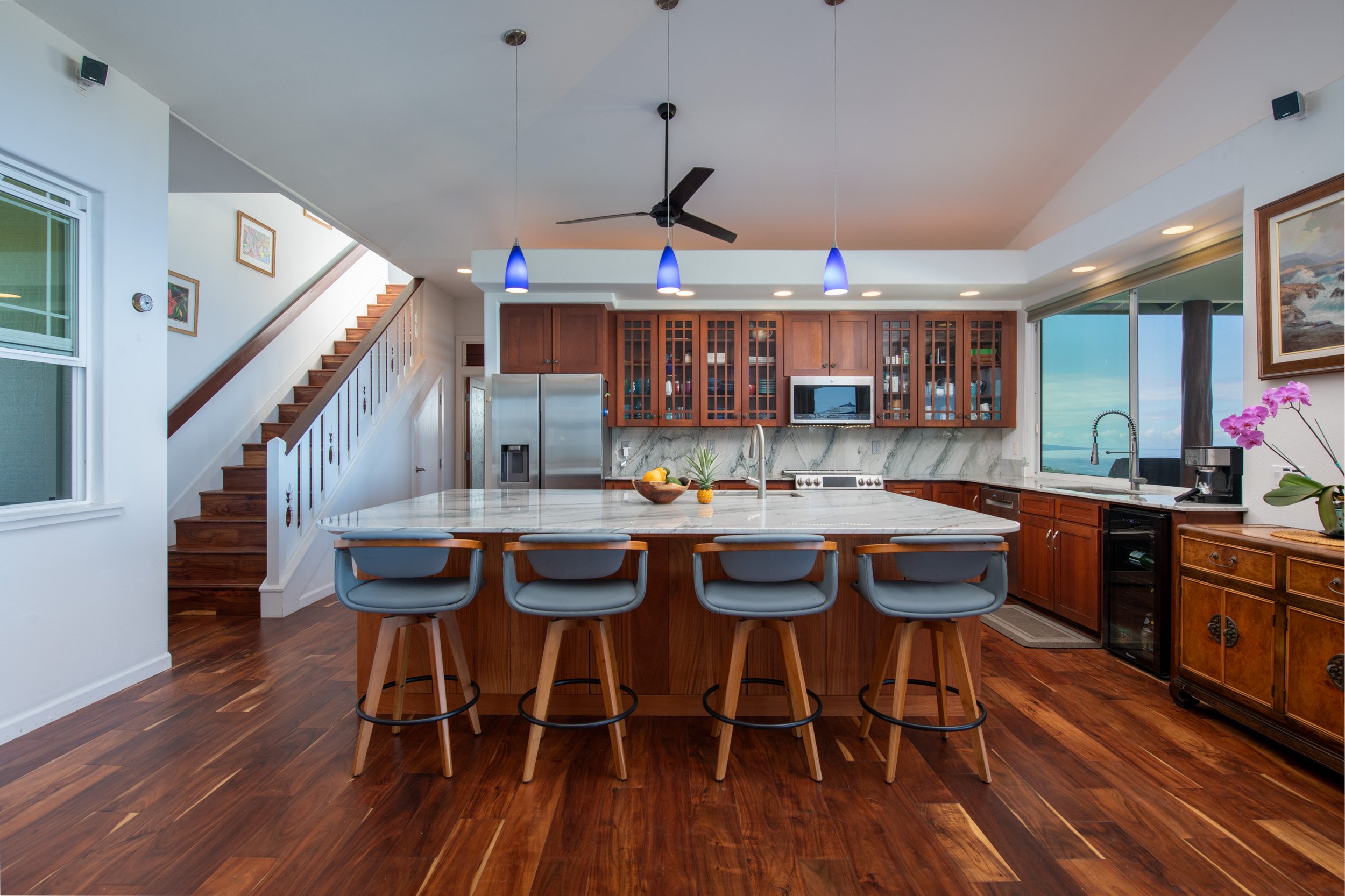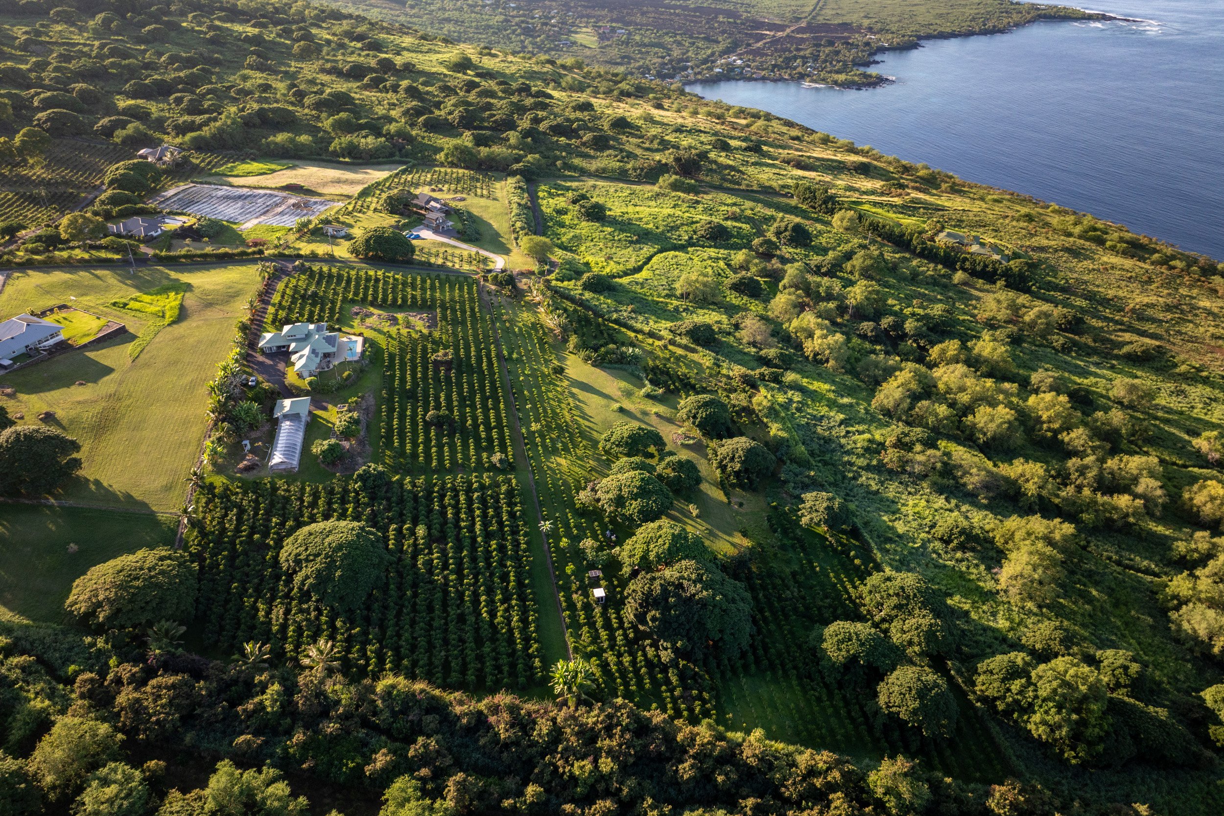 A beautiful South Kona sanctuary, 81-853 Makahiki Lane is the one. Set upon five private acres above the blue waters of Kealakekua Bay, this extraordinary Captain Cook estate enjoys unobstructed, panoramic ocean views that stretch endlessly to the horizon.Perfectly positioned at the end of the prestigious and secluded Makahiki Lane, the residence is enveloped by lush, producing coffee trees and a tapestry of tropical fruits. Thoughtfully designed for comfort and flow, all bedrooms are located on the main level, each oriented to frame the ocean views. A light-filled upstairs office provides a peaceful retreat for creative work or quiet reflection, opening to sweeping coastal vistas.Outdoors, a covered lanai and ocean-facing pool invite year-round enjoyment of Kona’s vivid sunsets. The landscape thrives with mature, irrigated coffee and an exceptional variety of fruit trees — mango, avocado, lemon, lime, tangerine, banana, grapefruit, lychee, lilikoi, coconut, and more — creating an atmosphere of abundance and privacy.Sustainability meets sophistication with 29 owned photovoltaic panels with net metering, county water service, and level 2 electric charger for your vehicle. Additionally, there is a 10KW battery backup system.A separate building and workshop offer versatility for creative, agricultural, or hobby pursuits. From this home, you can see the historical Puʻuhonua o Hōnaunau, listen for whales offshore, and explore nearby snorkeling, paddle boarding, and ocean adventures. A private access leads to the Ka‘awaloa Trail and Captain Cook Monument, one of Hawai‘i’s most celebrated underwater destinations.81-853 Makahiki Lane is more than an estate — it is a rare convergence of privacy, beauty, and connection to the land and sea, offering an unparalleled expression of Big Island living along the coveted South Kona coastline.