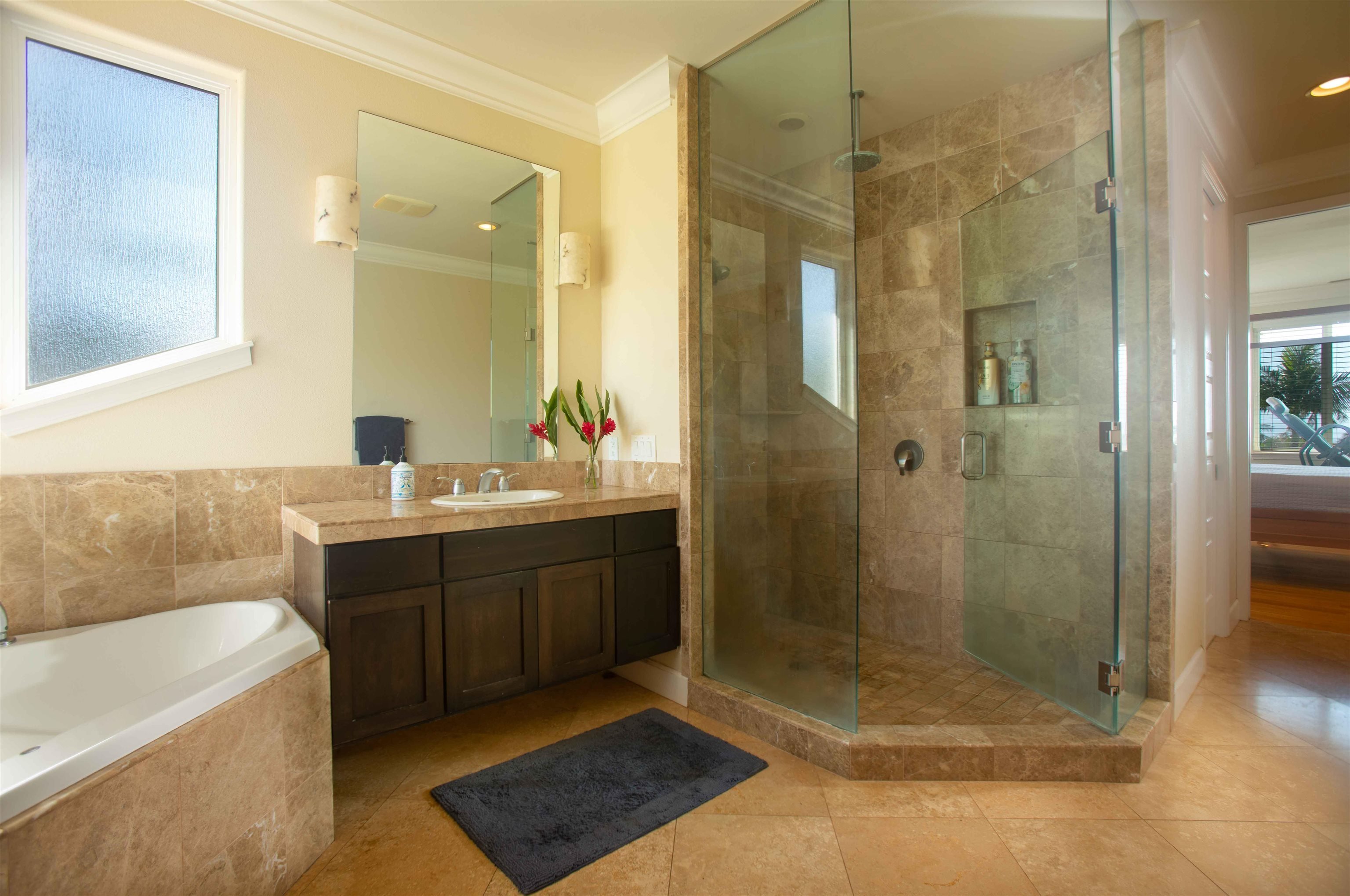 Enjoy panoramic views in Ka’anapali Hillside! 81 South Piki backs up to a private park, on a cul-de-sac with no through traffic -- arguably the best location in Ka’anapali Hillside. After a day on white sandy Ka'anapali Beach, grill dinner with your 'ohana on the outdoor patio with sunset views between the islands of Molokai and Lanai. This home has been thoughtfully designed with an open kitchen, living area, and primary bedroom upstairs, all capturing ocean views. Tall vertical windows take in the morning light over the open green park and West Maui mountains. The other three bedrooms are downstairs; one bedroom is a mother-in-law suite that can be locked off, overlooking the garden area. Spacious primary bathroom with travertine tiles has both a tub and a walk-in shower. Drive your golf cart down the street to Kahekili Beach Park (Airport Beach) where you can swim down to Black Rock. Or hike up in the Coffee Farms behind the neighborhood. This home is next to a private park where you can celebrate birthdays or take the dog out for some socializing. Two-car garage has space for all your toys. This large lot has space for you to add a pool and spa right off the covered patio area downstairs. Roof is Monier tile.