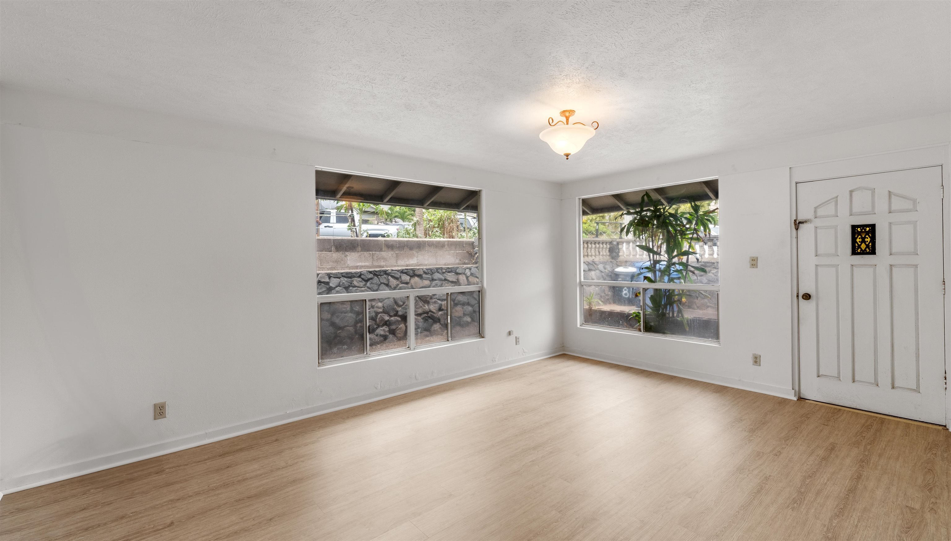 Great solid built single-story home built with split block tile and newer presidential roofing. Beautiful Blue rock wall on front and sides give it a very appealing look. Home is presently set up into 2 separate living areas but can be configured into a very large 5 bedroom home if desired. New LVP in front living area. Home is set up as a 3 bedroom 2 bath and 2 bedroom 2 bath w/carport, plenty of parking in rear of property and front. Good storage and some ocean and mountain views. Super great location to all the amenities Wailuku has to offer.
