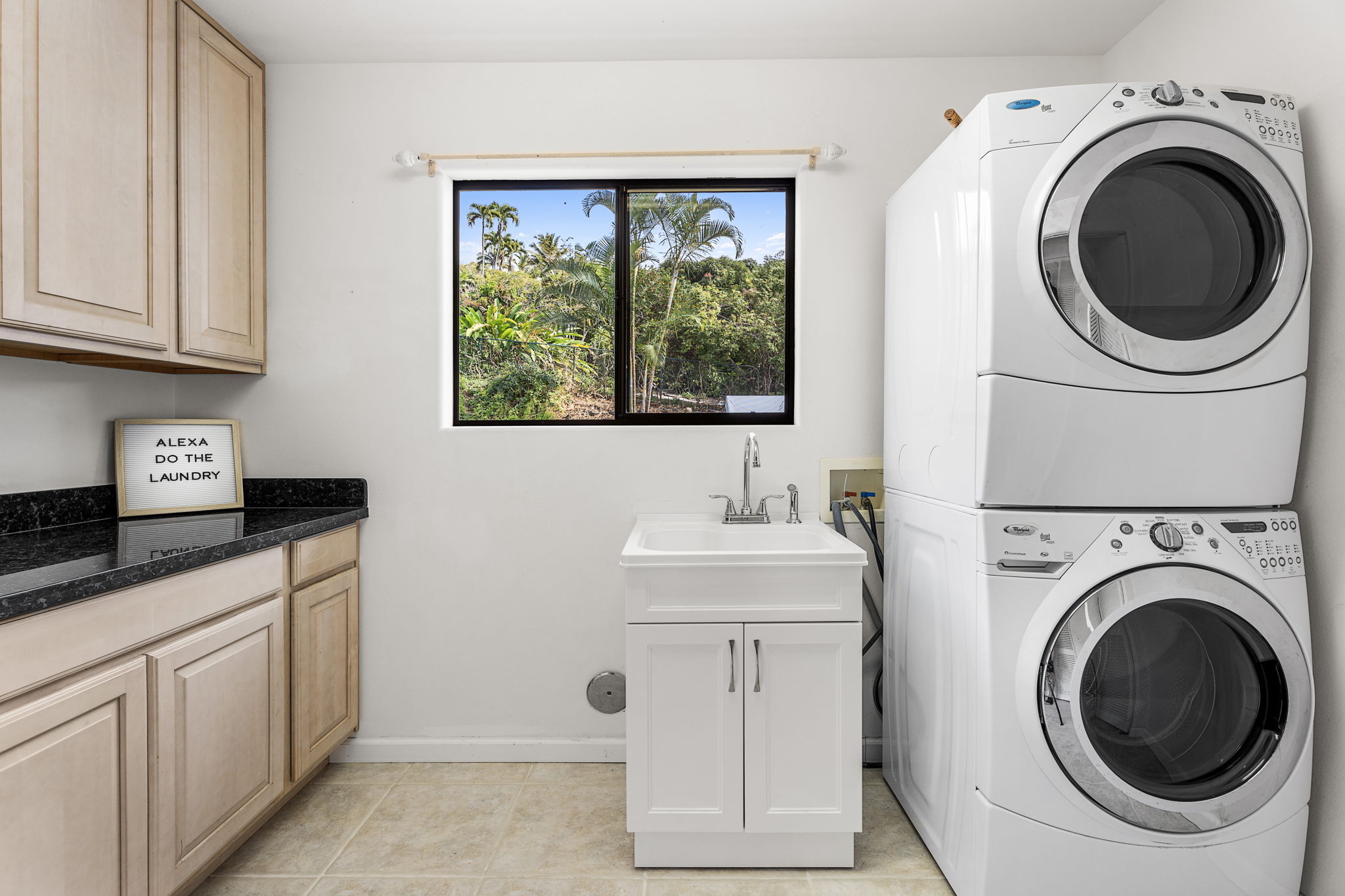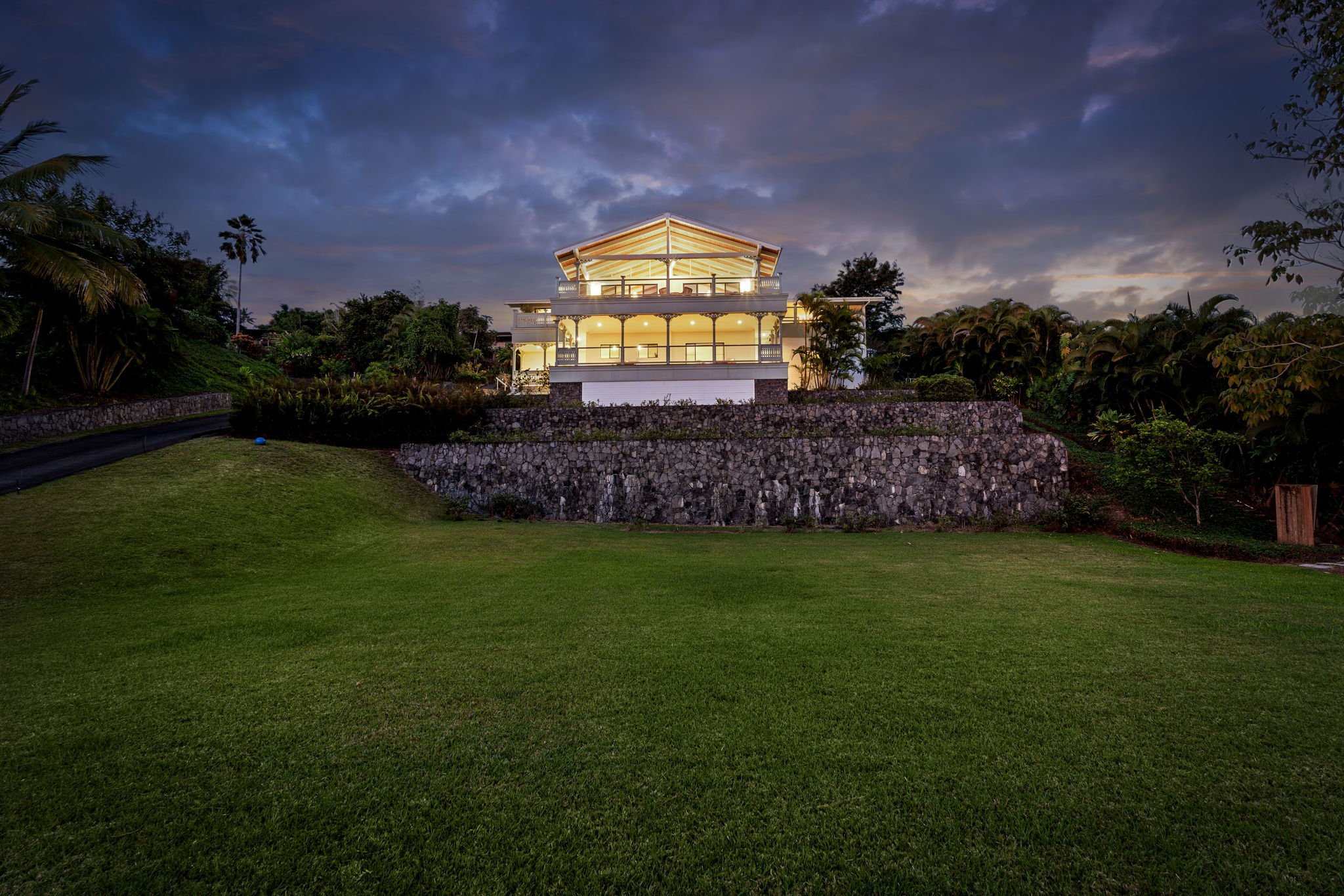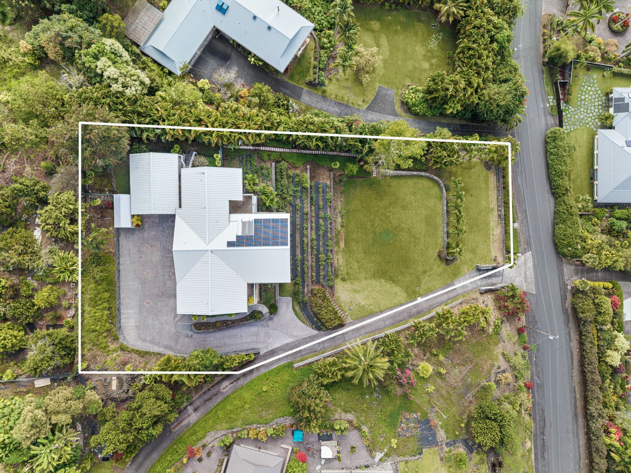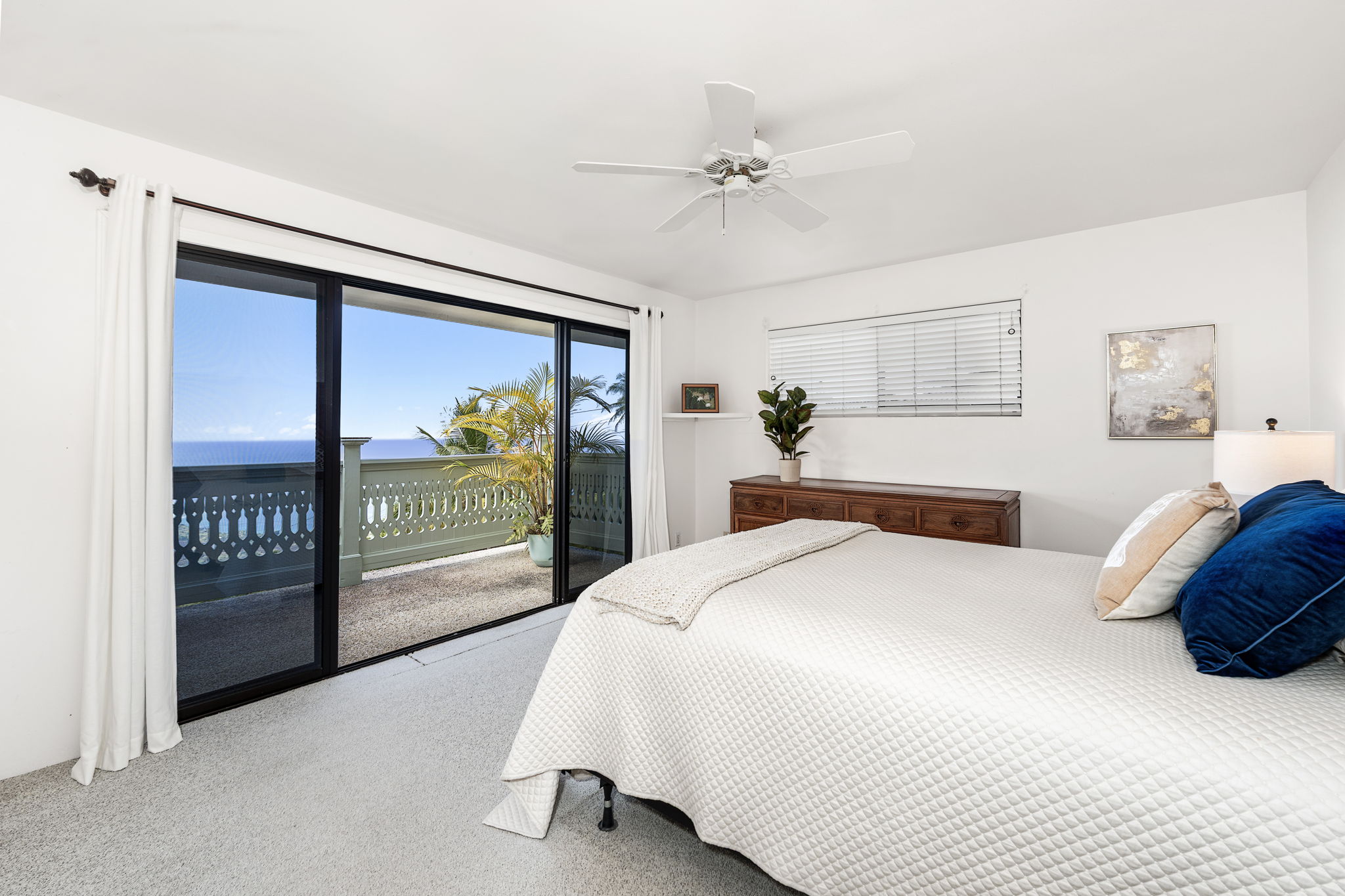 Perched on one acre in the prestigious McCoy Plantation, this spectacular estate captures arguably the most breathtaking panoramic views in South Kona. Enjoy sweeping vistas of the coastline and hinterland stretching from Manini Beach in Kealakekua Bay to Miloliʻi, including iconic Keei surf break and Hōnaunau Bay. Situated at an ideal 1,200’ elevation, the home benefits from a mild, refreshing climate and cooling trade winds. Lucky Bennett Designed for indoor-outdoor living, the residence offers 1,409 sq ft of covered lanai space —perfect for sunsets and entertaining. Thoughtfully terraced grounds with impressive rock walls frame the west-facing views, while a gated entrance and winding driveway provide privacy and a gracious arrival. This 4 bedroom, 3.5 bath home features a grand entry with etched glass double doors, a welcoming living room with solid oak floors, vaulted open-beam ceilings, and custom mahogany built-ins. The chef’s kitchen is well-appointed with granite counters and quality appliances, flowing seamlessly into a dining area overlooking the coastline. The main suite enjoys ocean views, a light-filled bath with jetted tub, marble tile, and a spacious walk-in closet. The lower level includes a private 1 bed/1 bath guest quarters with separate entrance, covered lanai, and the same stunning views—ideal for extended guests or multi-generational living. Additional highlights include a laundry room, central vacuum, solar hot water, leased PV system (25 panels installed 2013), and an oversized two-car garage with storage, workbench, and plumbing for a future bath. Lush landscaping includes bananas, citrus, lilikoi, avocado, precious jade flowers and drip-irrigated Japanese tea plants. A rare combination of privacy, views, and quality construction—just minutes from shopping, dining, and medical facilities in historic Captain Cook.VIDEO: https://hawaiian-virtual-tours.aryeo.com/videos/019c1dd4-8a56-71cf-b106-4bdb88a98959